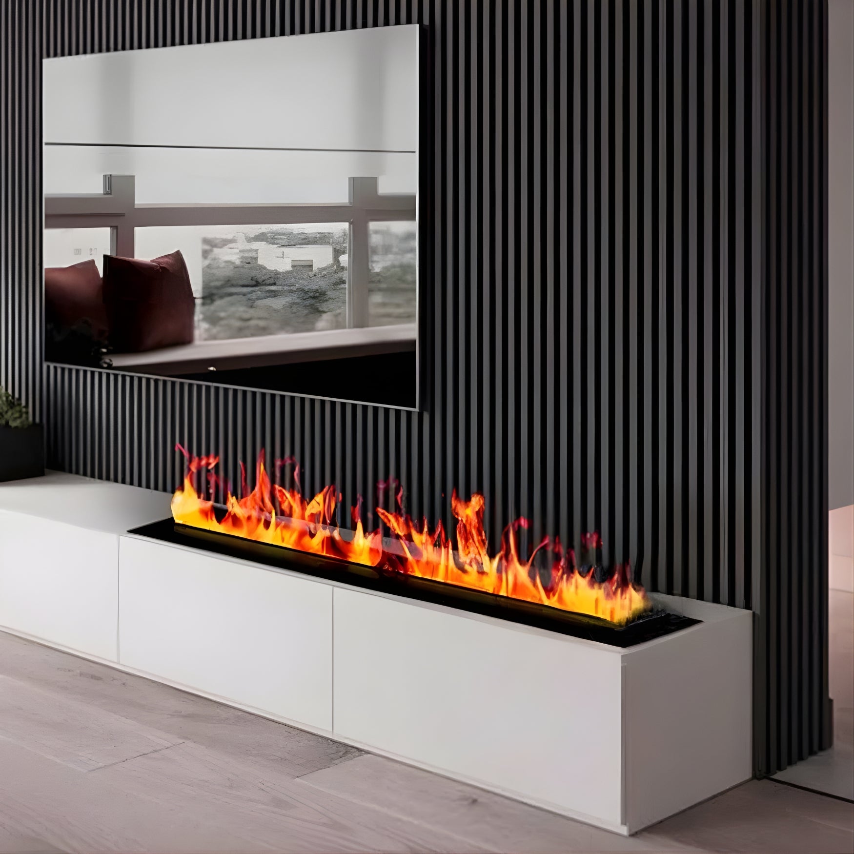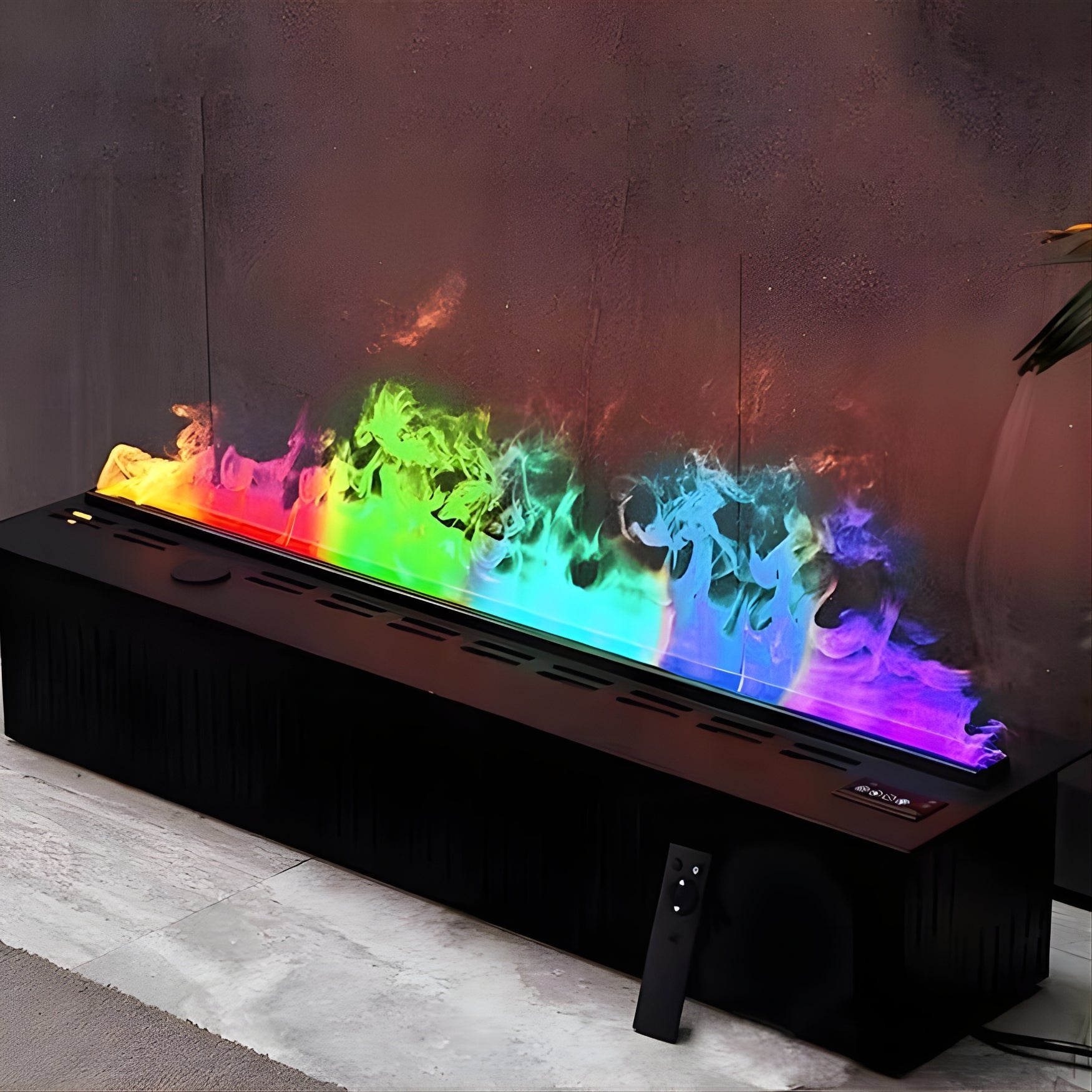 Crafted for homes, apartments, and commercial interiors, this innovative fireplace uses LED illumination and ultra-fine vapor to create a realistic 3D flame effect that flickers naturally, adding instant atmosphere to living rooms, bedrooms, lobbies, and entertainment spaces. Because it produces no smoke, odor, ash, or real heat, AquaVapor is perfectly safe for families, pets, and enclosed indoor environments.