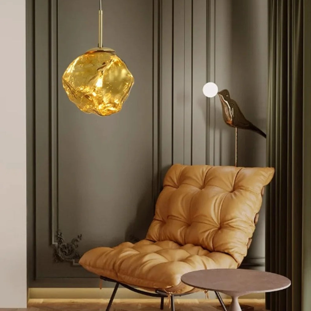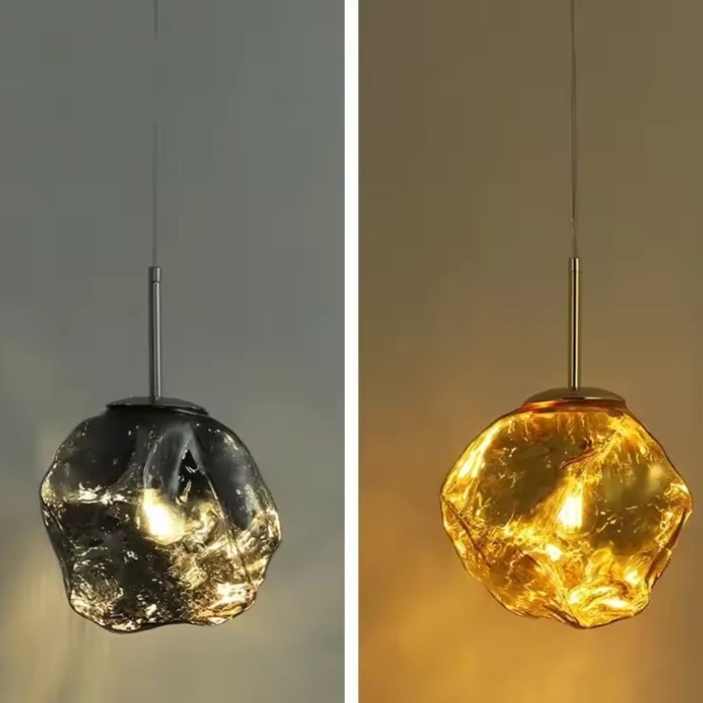 ✔️ Artistic Ice-Glass Design: Handcrafted irregular glass shade resembling molten ice, making each piece unique.