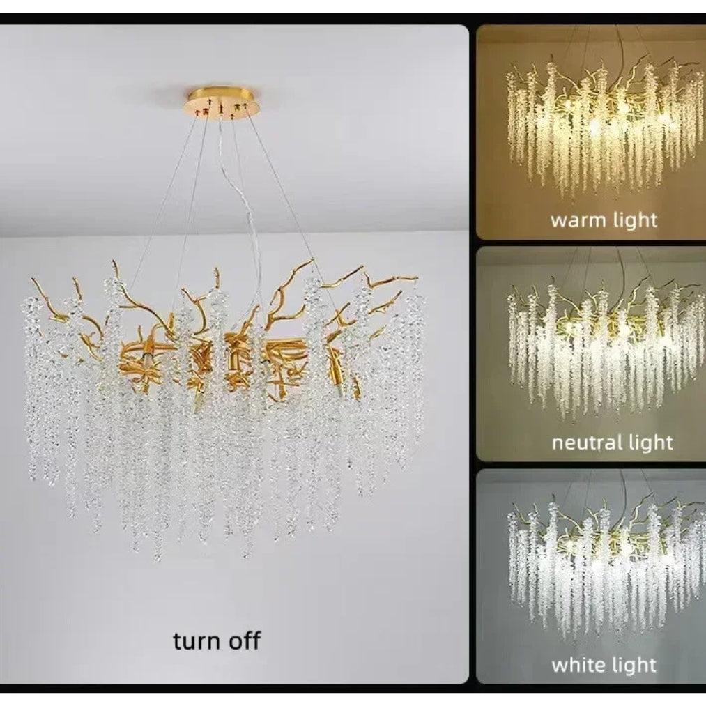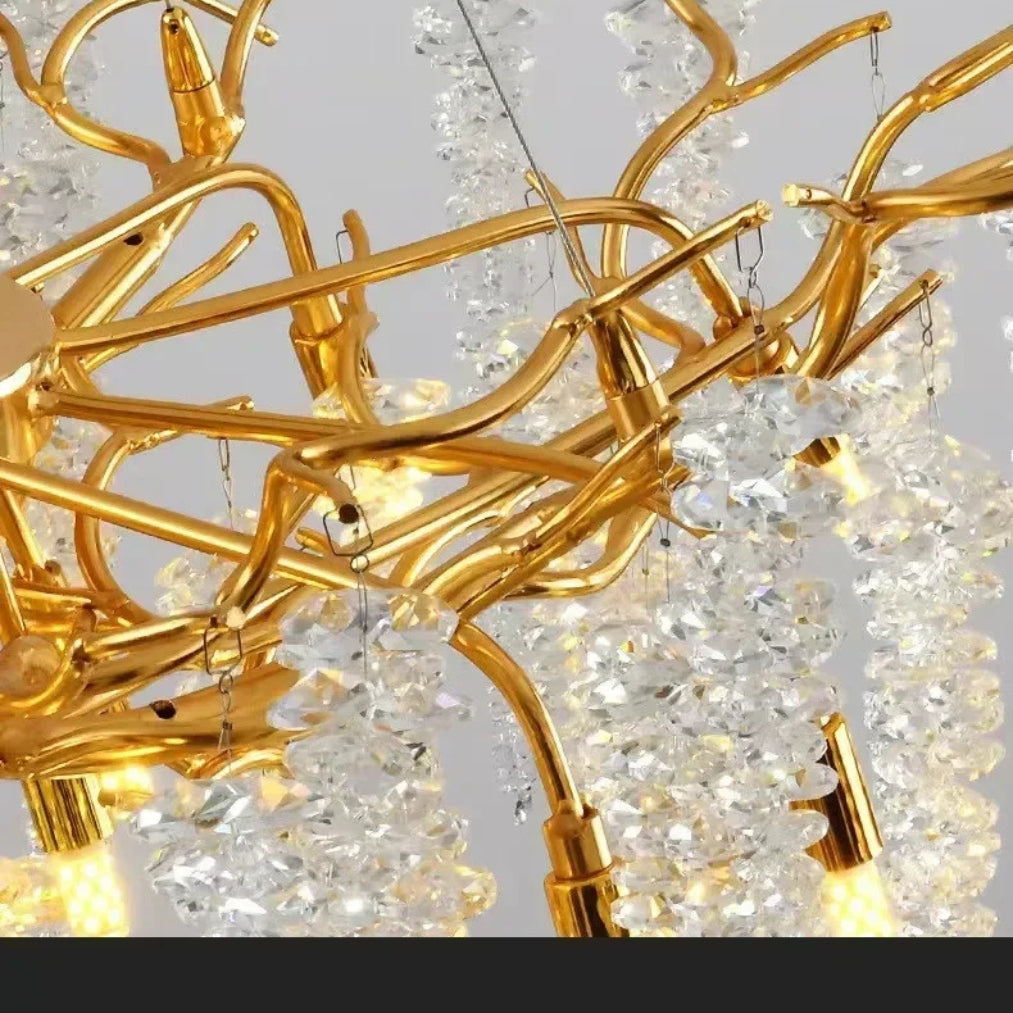 Bring nature-inspired elegance into your home with the AuroraCascade Nordic Tree Branch Crystal Chandelier. Designed with a blend of durable aluminum, sparkling crystals, and a luxurious gold-plated finish.