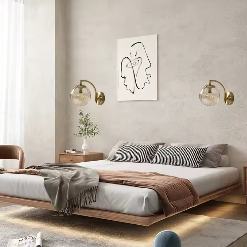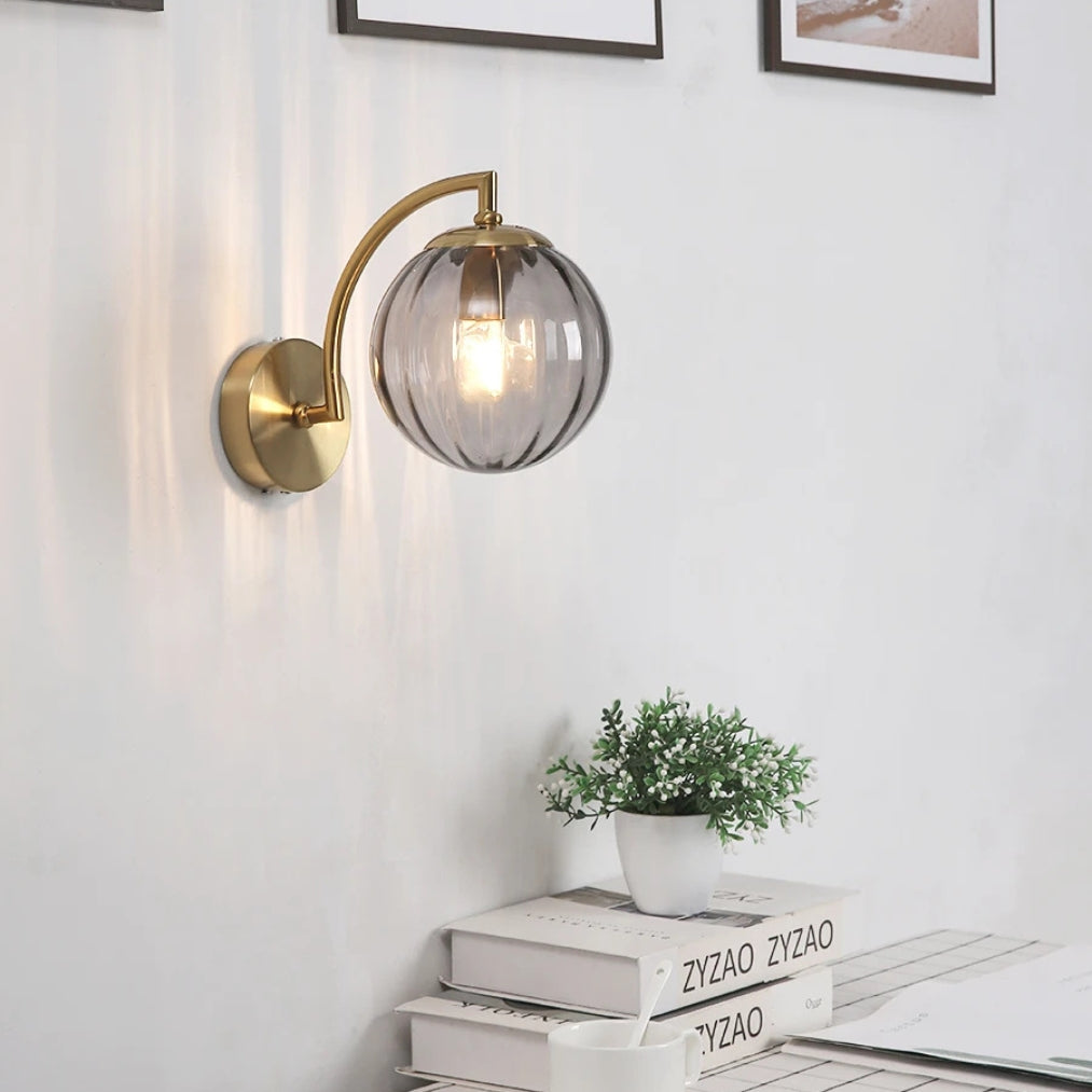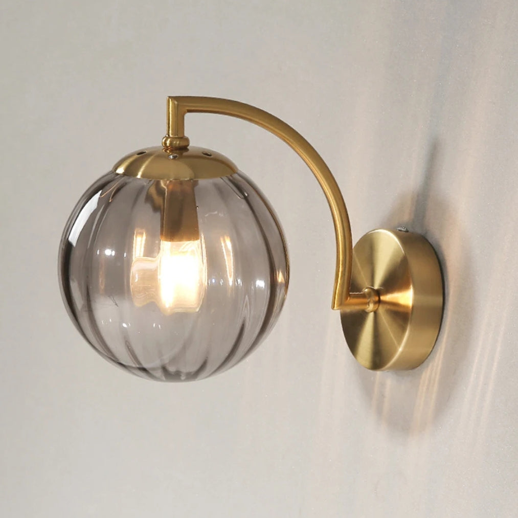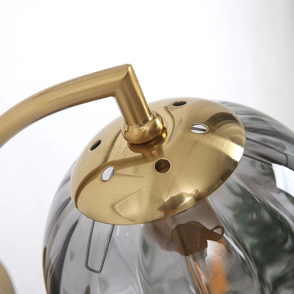 Give your space a touch of luxury with the BallBrillia bedside glass wall lights. Designed with a golden curved arm and a sleek smoky glass globe, this wall sconce instantly elevates any room with its modern charm.