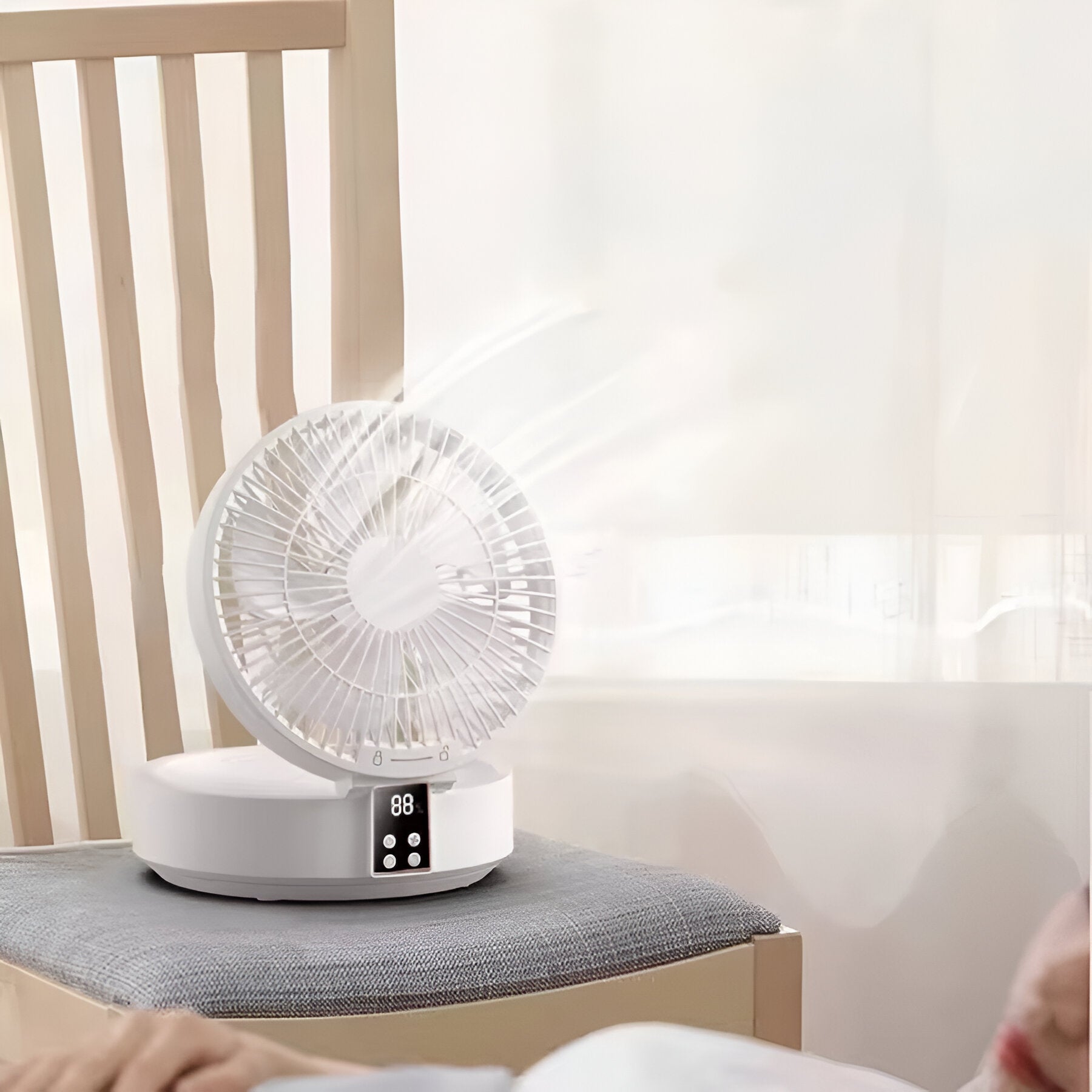 Whether you're working at your desk, relaxing in bed, or cooling off in a small room, this sleek and compact fan offers powerful airflow in a space-saving foldable design. Wall-mountable and rechargeable, it's made for modern lifestyles that need comfort without clutter.