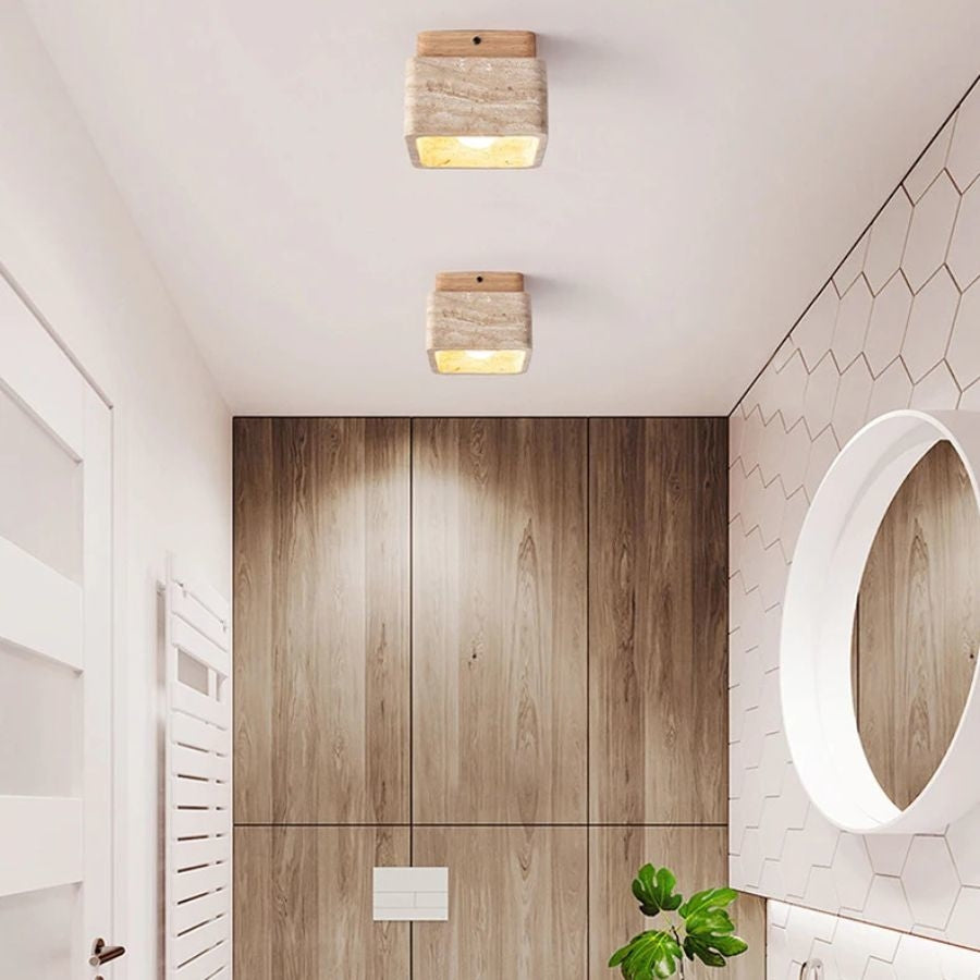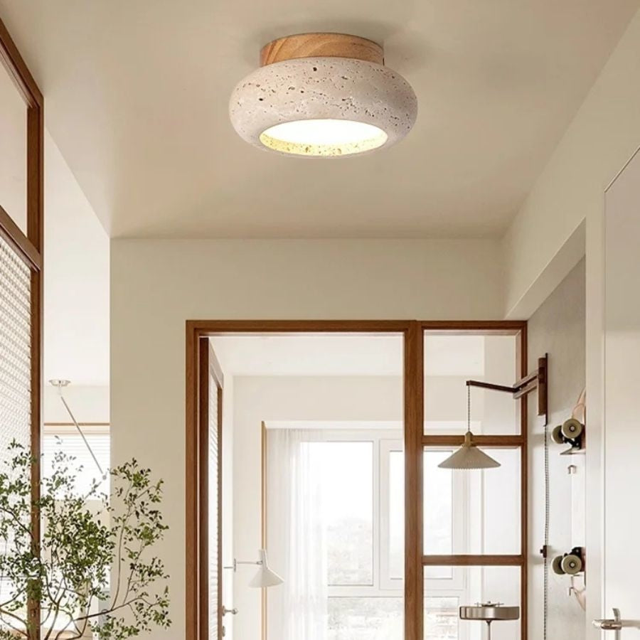 Bring timeless elegance and natural warmth into your home with the CavoGlow Flush Ceiling Mount Light Fixture. Crafted from authentic travertine stone with a subtle wood accent, this unique piece combines rustic charm with modern LED efficiency.