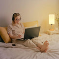 Ideal for bedrooms, nightstands, desks, or cozy living spaces, it creates the perfect atmosphere for reading, relaxing, or winding down at night. With its soft fabric shade and natural wood-style base, ControlGlow blends seamlessly into modern and minimalist interiors while adding practical functionality to your daily routine.