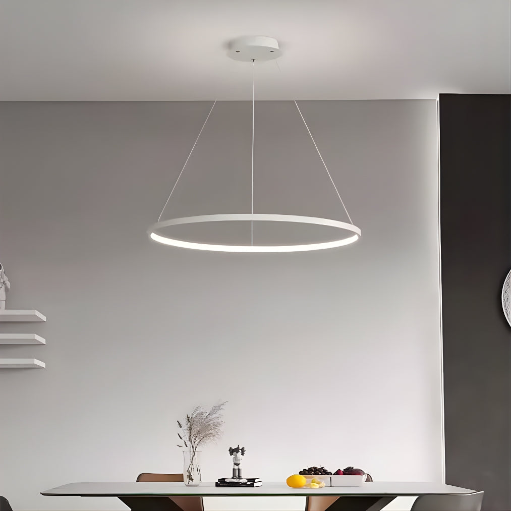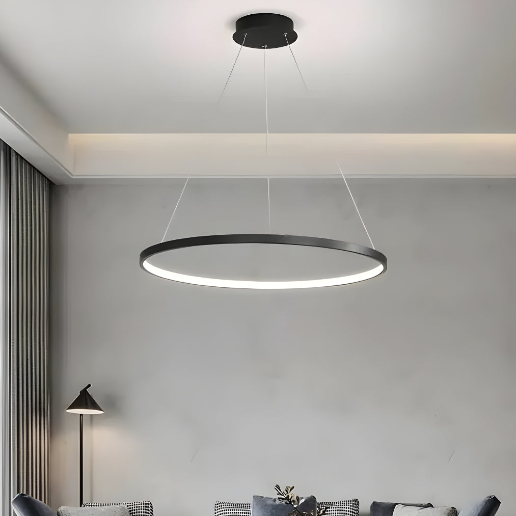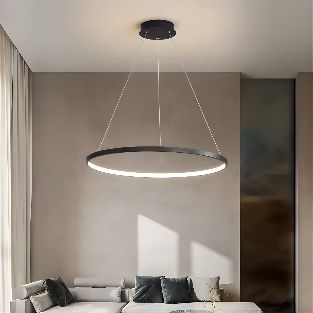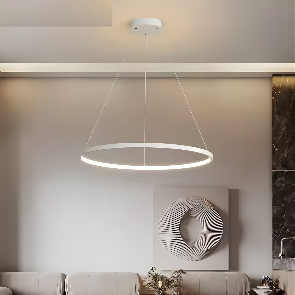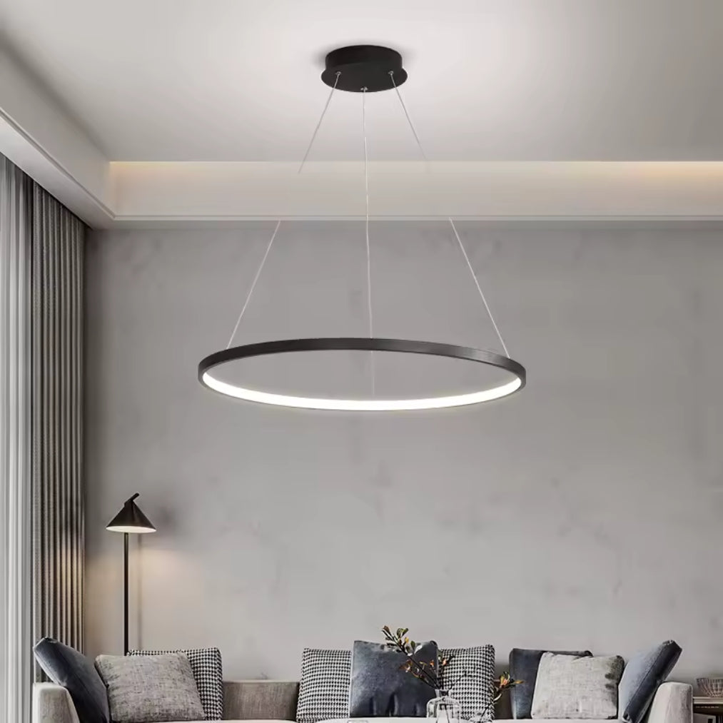 The CorvinaLum transforms everyday lighting into a refined art form. Designed with a sleek circular frame that appears to float effortlessly, this LED pendant light fills your space with balanced, glare-free illumination.