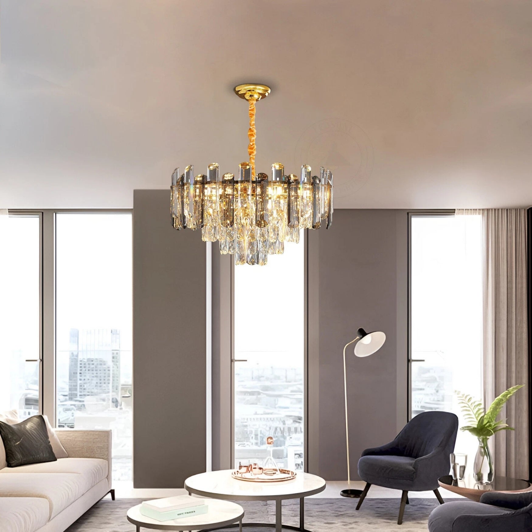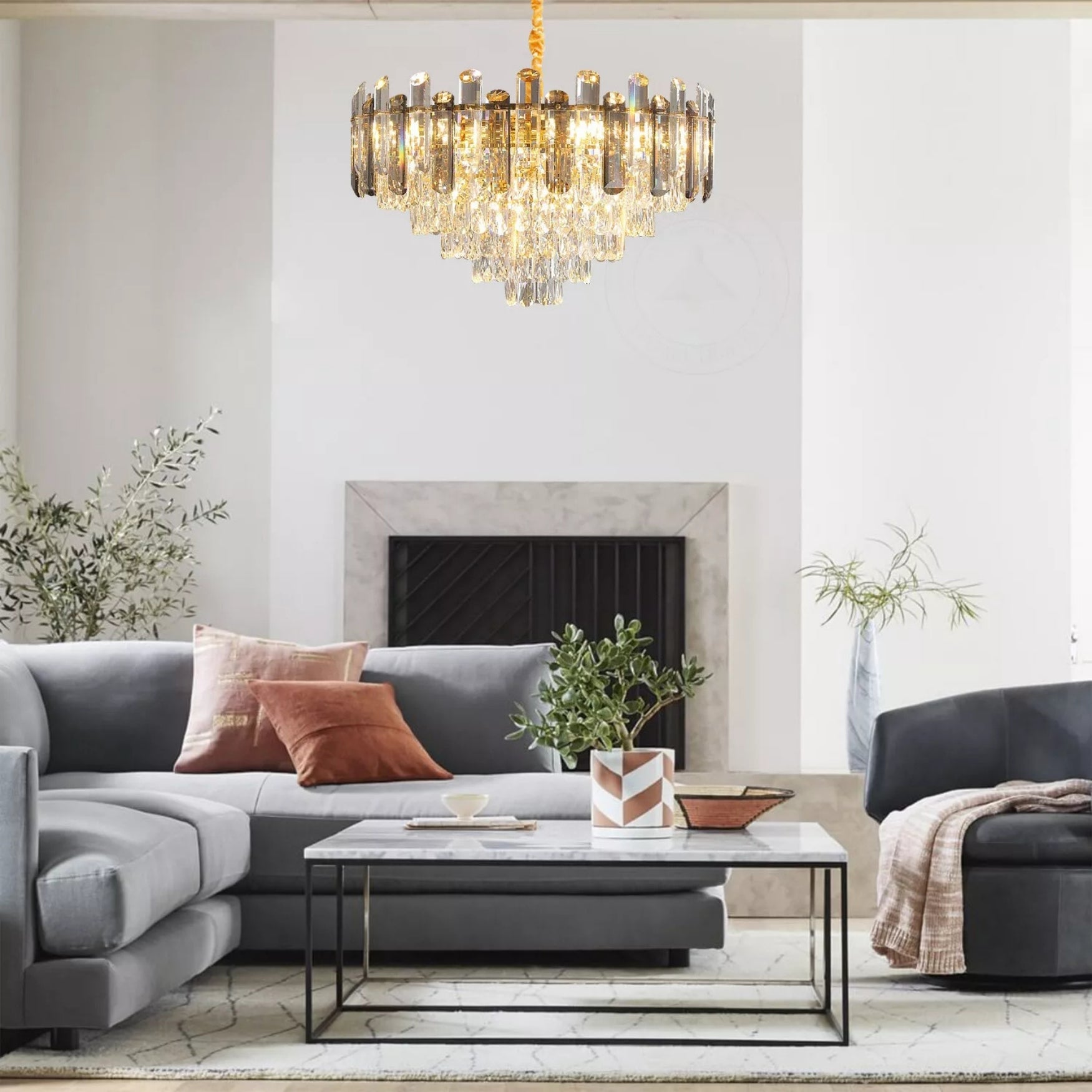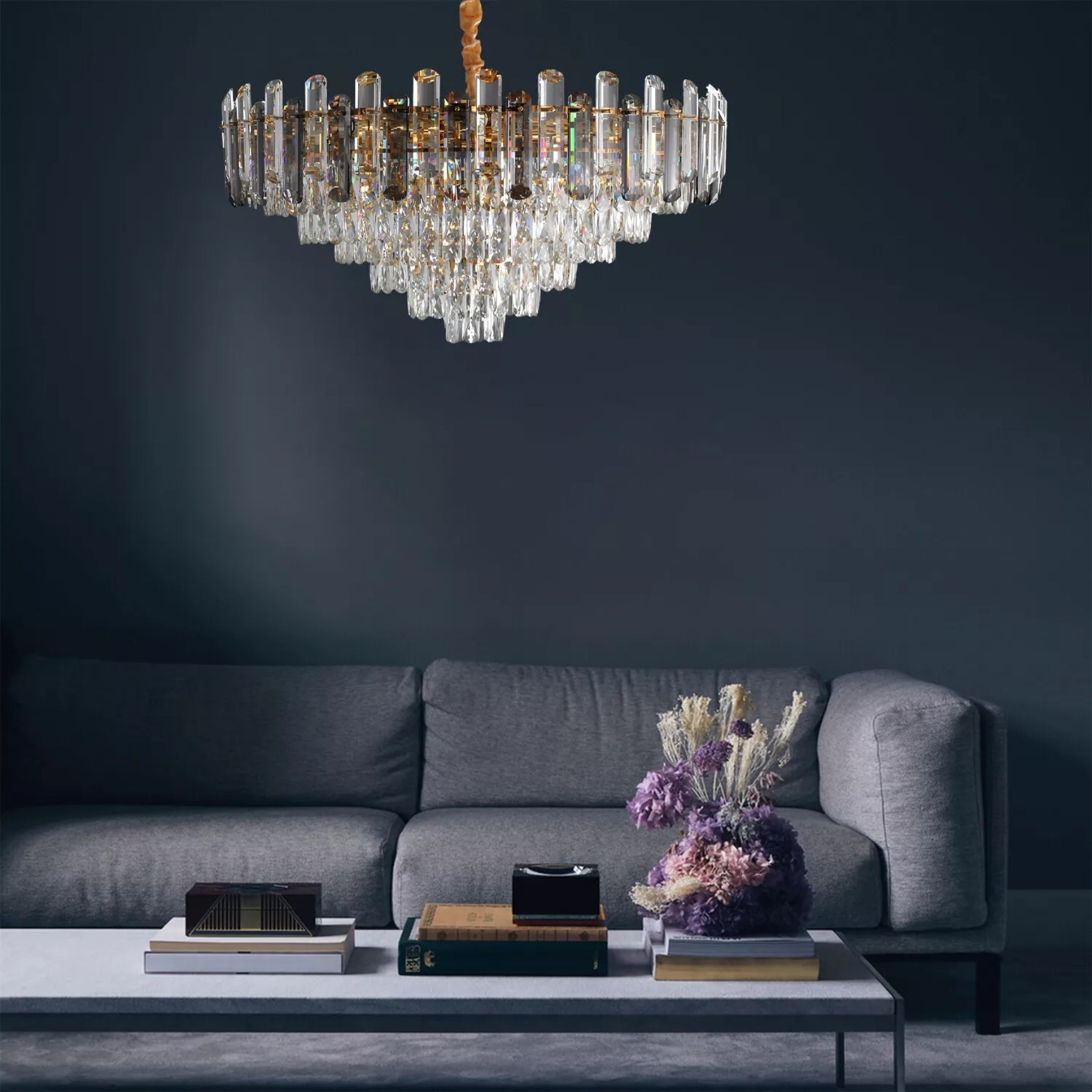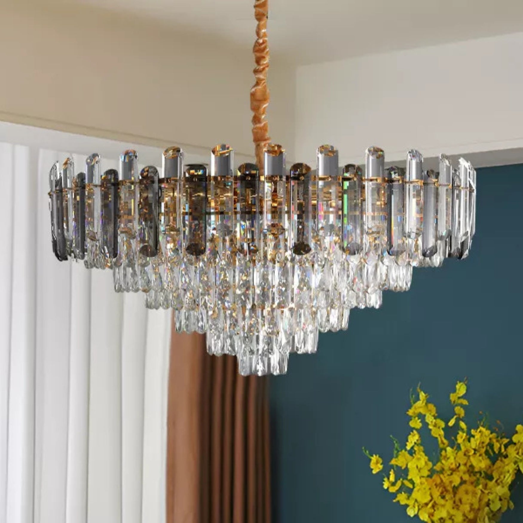 ✔️ Multi-tiered crystal structure – Layered crystal prisms refract light beautifully, creating a sparkling, luxurious atmosphere.