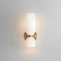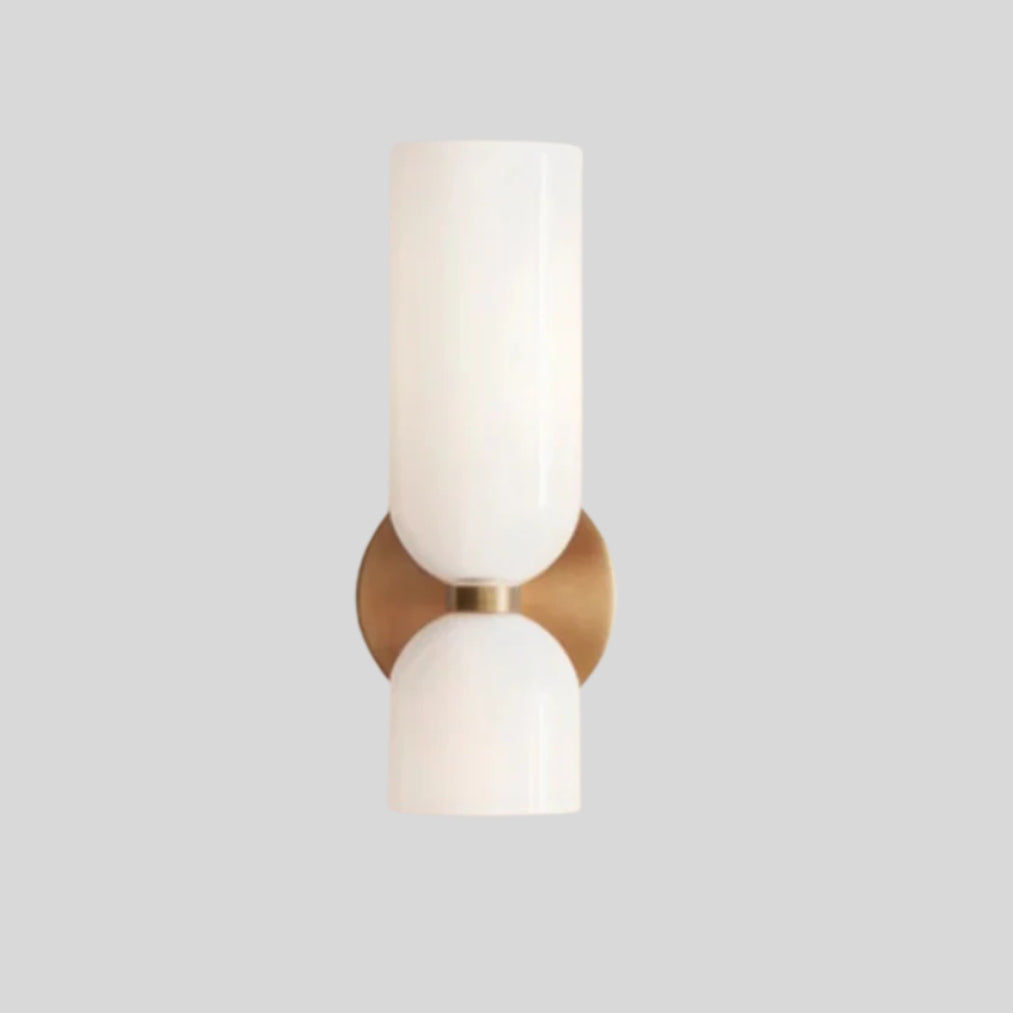 The DoubleGlow wall sconce features a modern double-ended glass design paired with a sleek metal base, casting light both upward and downward for a soft, balanced glow.