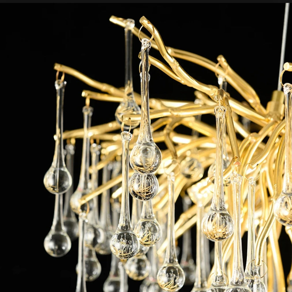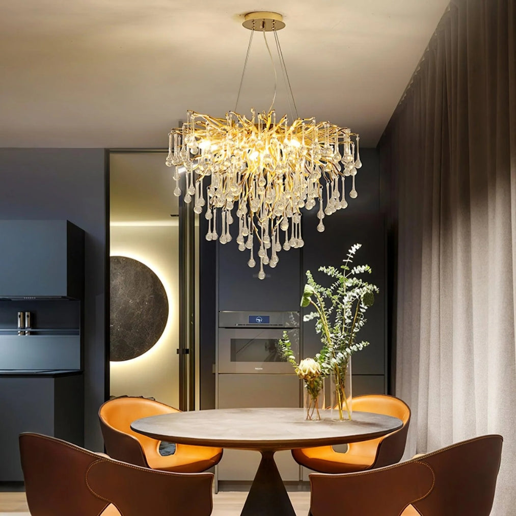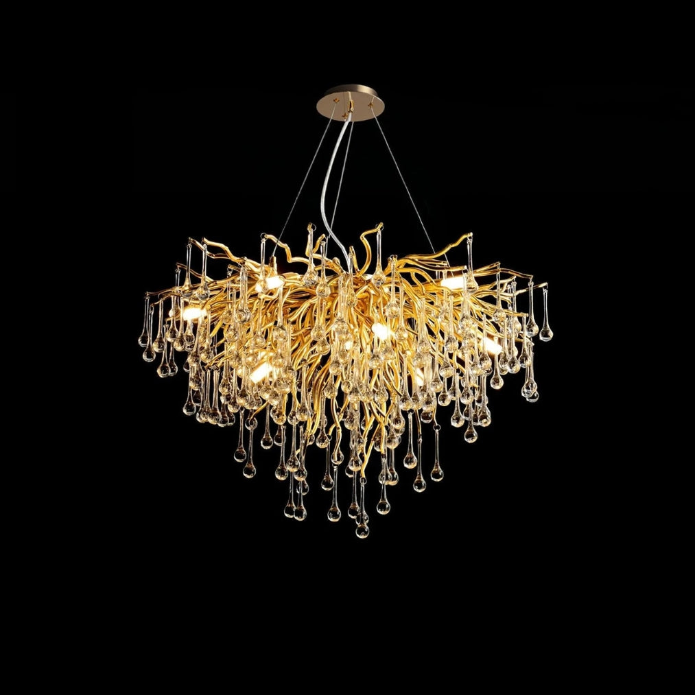 Elevate your interior with the DropLuxe Golden Crystal Water Drop Chandelier Light, a true fusion of luxury and modern elegance. Featuring a striking golden branch design adorned with cascading crystal droplets, this chandelier transforms any room into a radiant masterpiece.