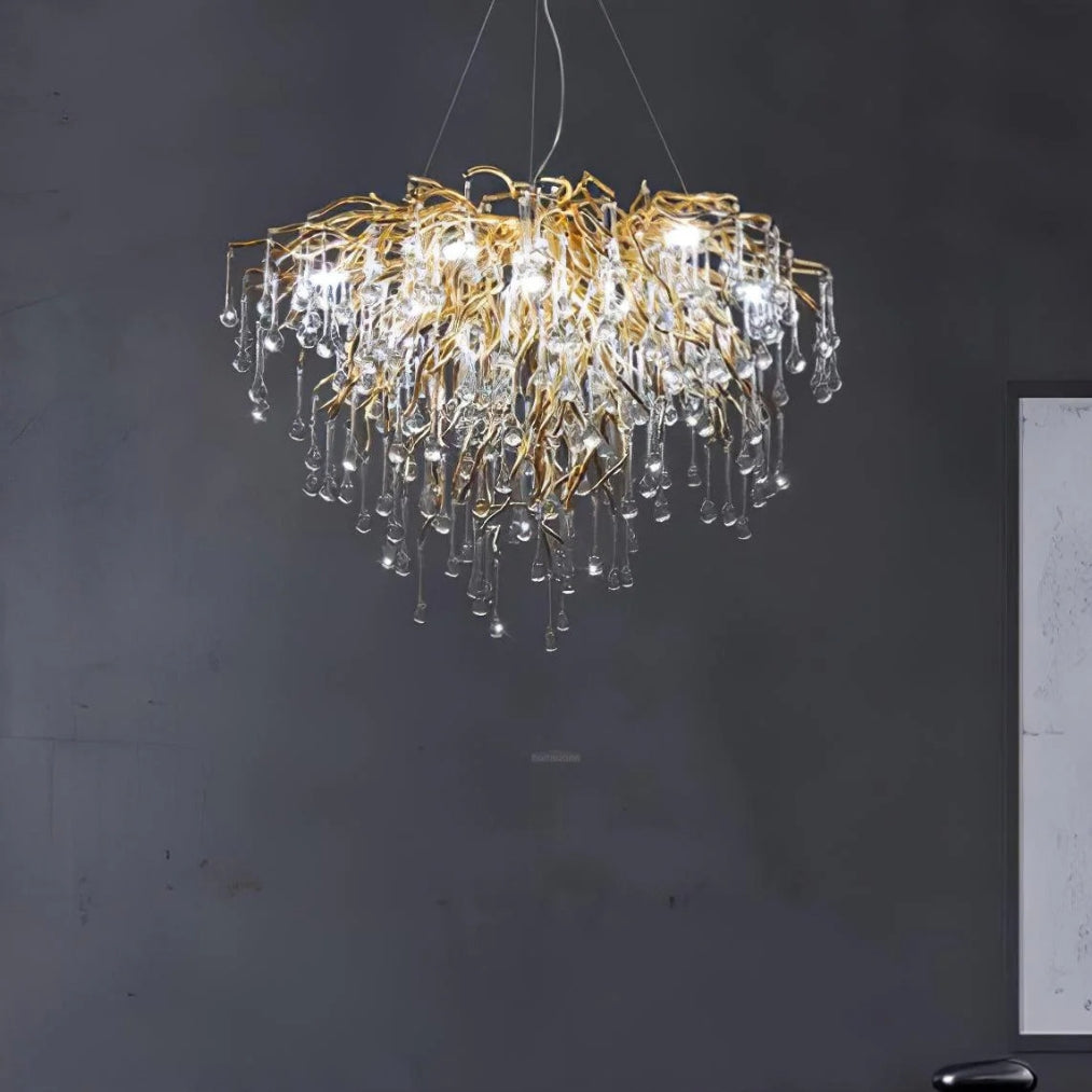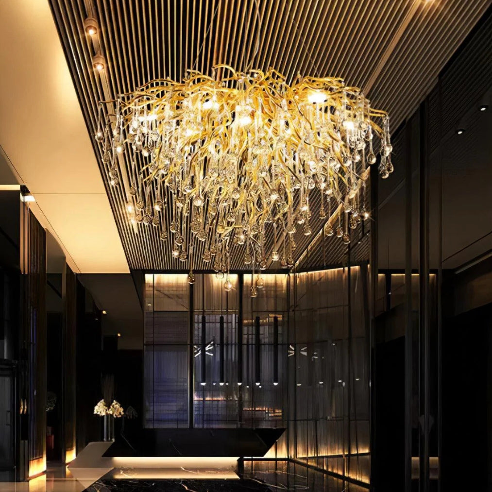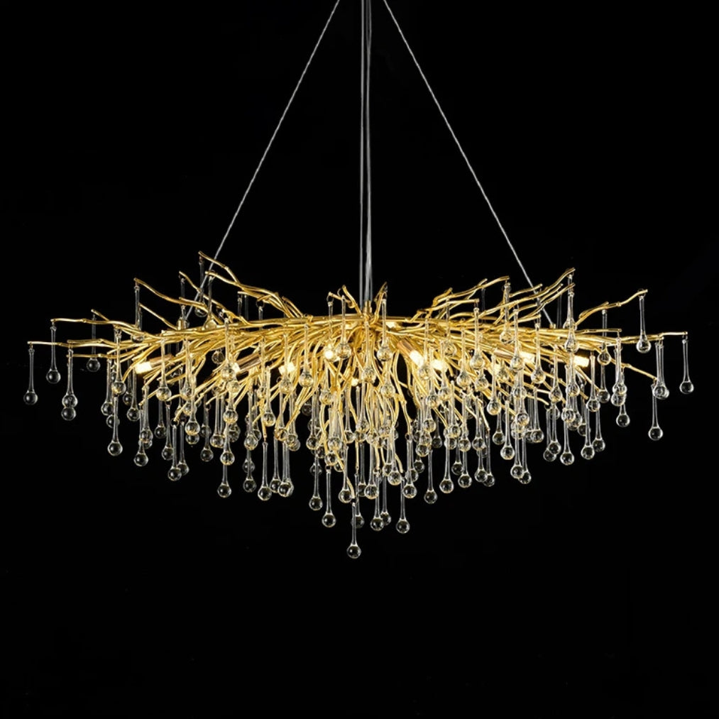 Elevate your interior with the DropLuxe Golden Crystal Water Drop Chandelier Light, a true fusion of luxury and modern elegance. Featuring a striking golden branch design adorned with cascading crystal droplets, this chandelier transforms any room into a radiant masterpiece.