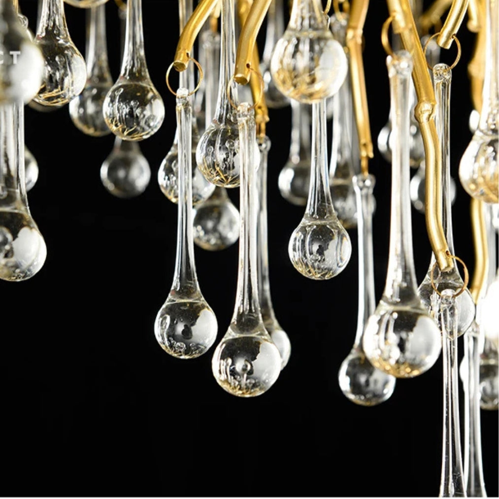 DropLuxe – Golden Crystal Water Drop Chandelier Light