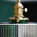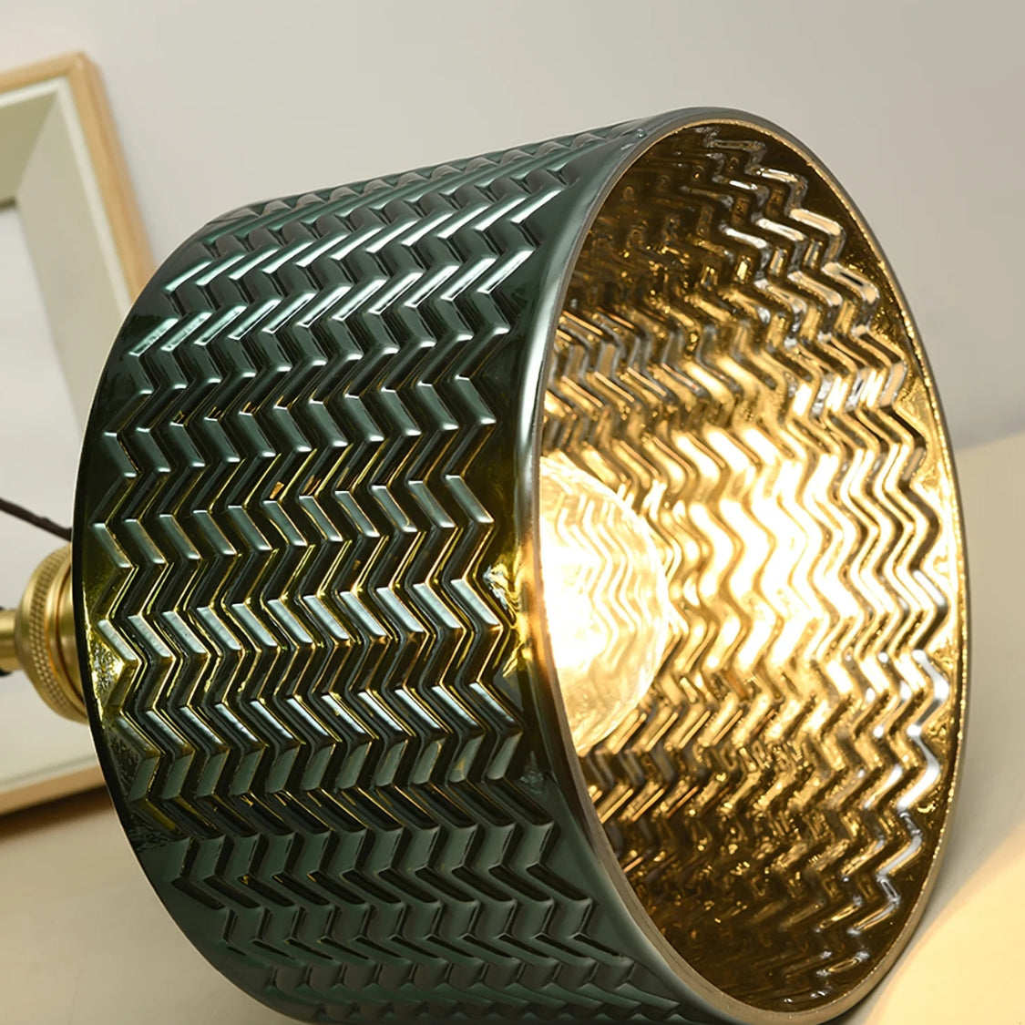 ✔️ Distinctive emerald glass shade – Stunning shape with textured detailing that reflects light beautifully, creating a striking centerpiece.