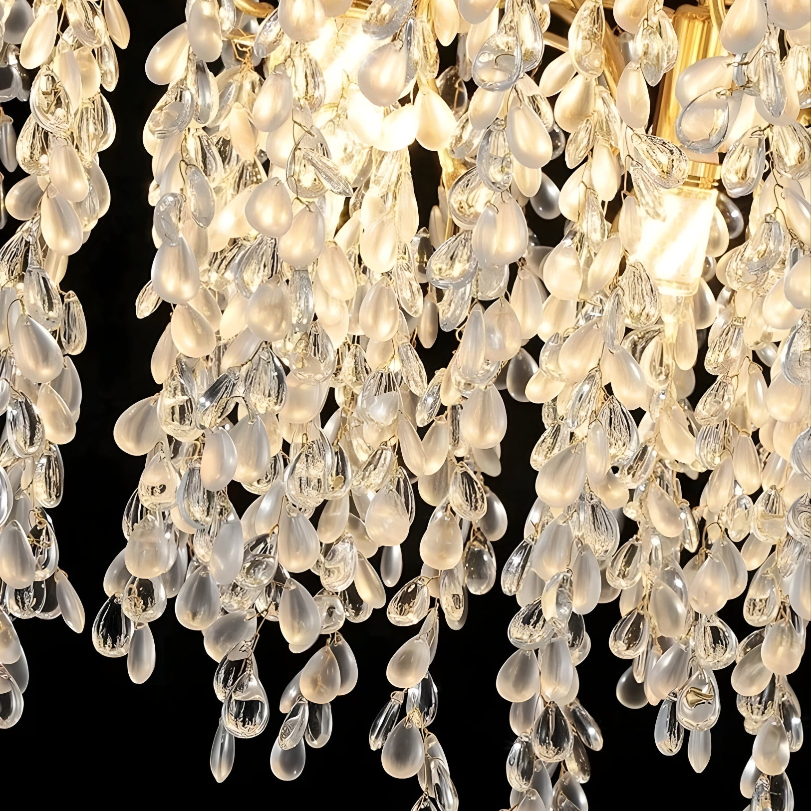 ✔️ Cascading Crystal Drop Design — The chandelier features dozens of sparkling crystal drops that resemble hanging vines or clustered grapes, creating a dynamic and mesmerizing light effect.