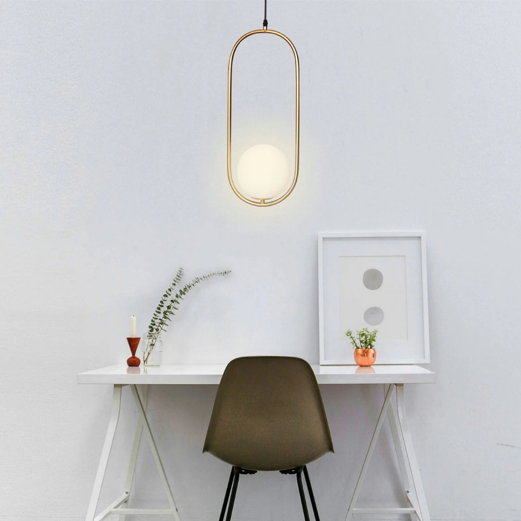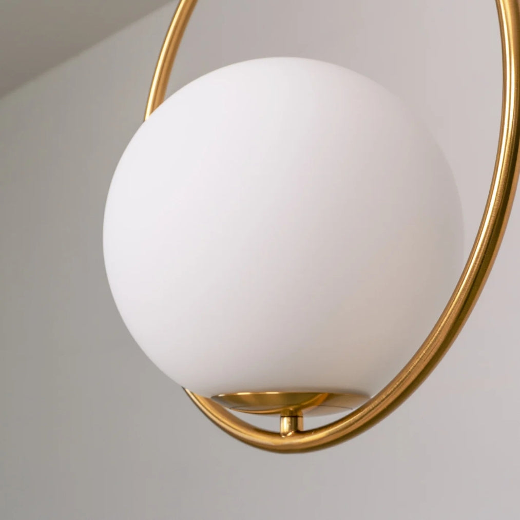 Add a touch of timeless elegance to your space with the HaloBall Ball Hanging Glass Pendant Light. Combining a sleek golden circular frame with a luminous frosted glass globe, this pendant light creates a harmonious balance of luxury and simplicity.