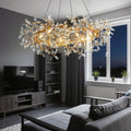 The HibiscusLume Crystal Flower Chandelier brings nature’s artistry into your home with a luxurious modern twist. Featuring golden branch-shaped frames adorned with transparent K9 crystal flower pendants, this chandelier ceiling light creates a dazzling play of light and shadow.