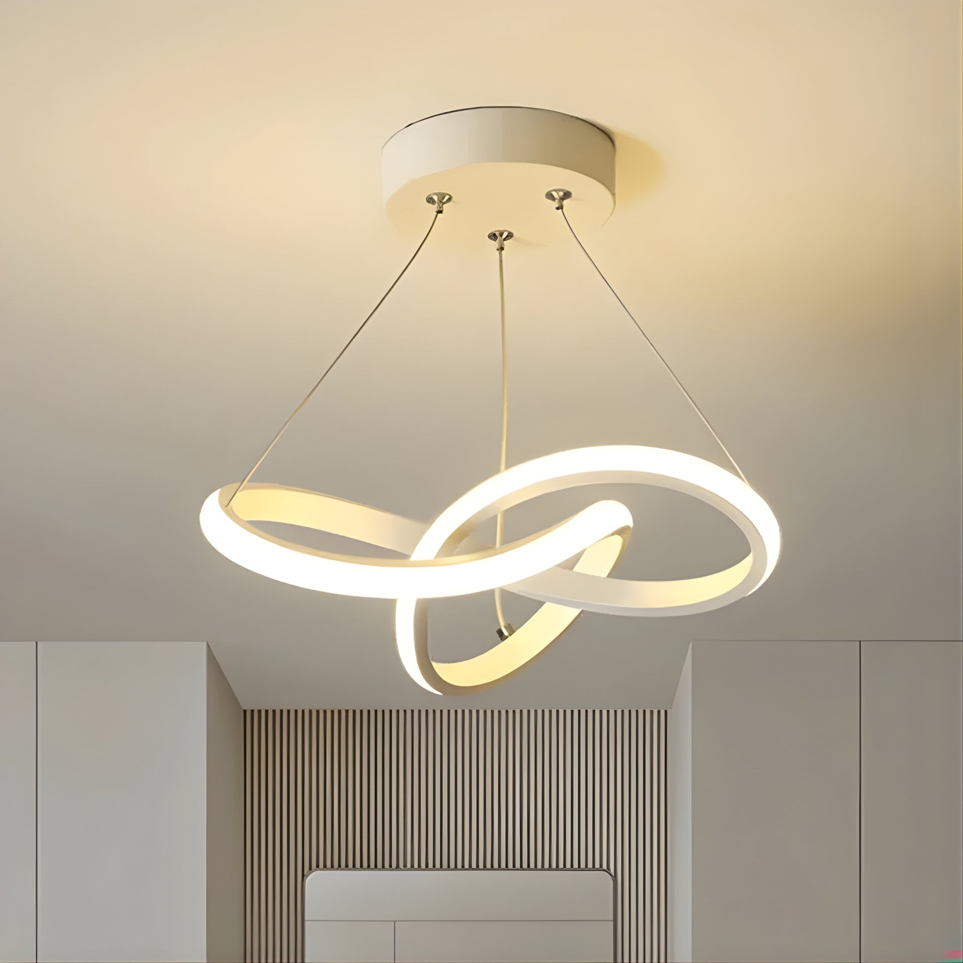 ✔️ Elegant Infinity Design – The intertwining LED loops form a fluid, contemporary silhouette that symbolizes endless style and sophistication.