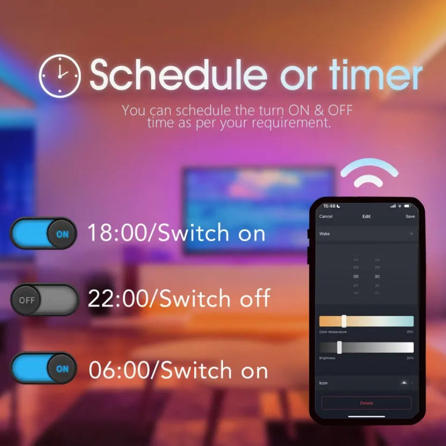 Smart Features: App control, timing switch, voice assistant integration, music sync, custom scenes