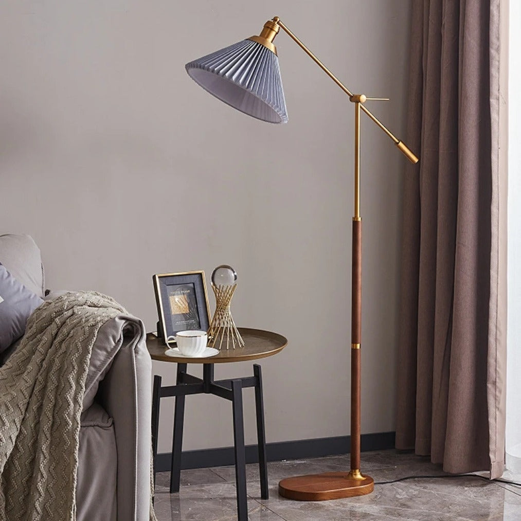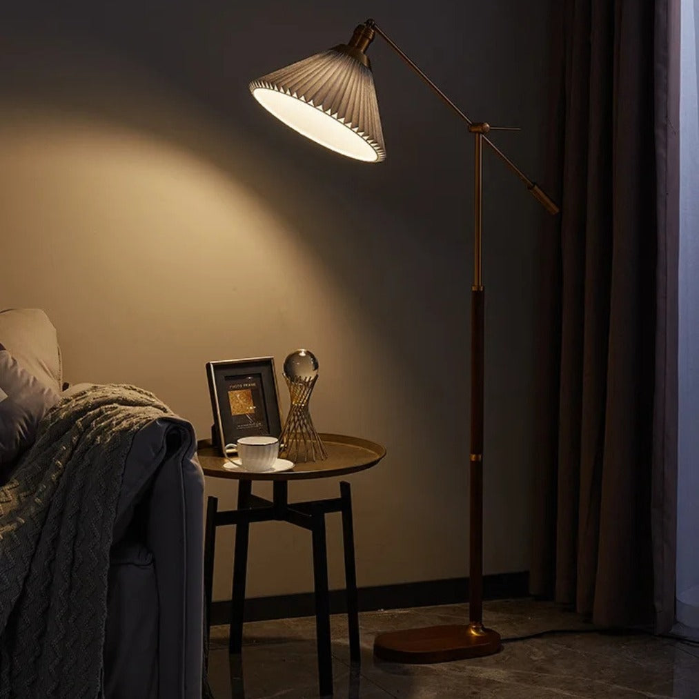 Bring timeless charm and modern elegance into your home with the LumaCone – Vintage Floor Standing Lamp. Crafted from walnut wood with golden accents and a soft fabric shade, this lamp blends Nordic simplicity with American vintage style.