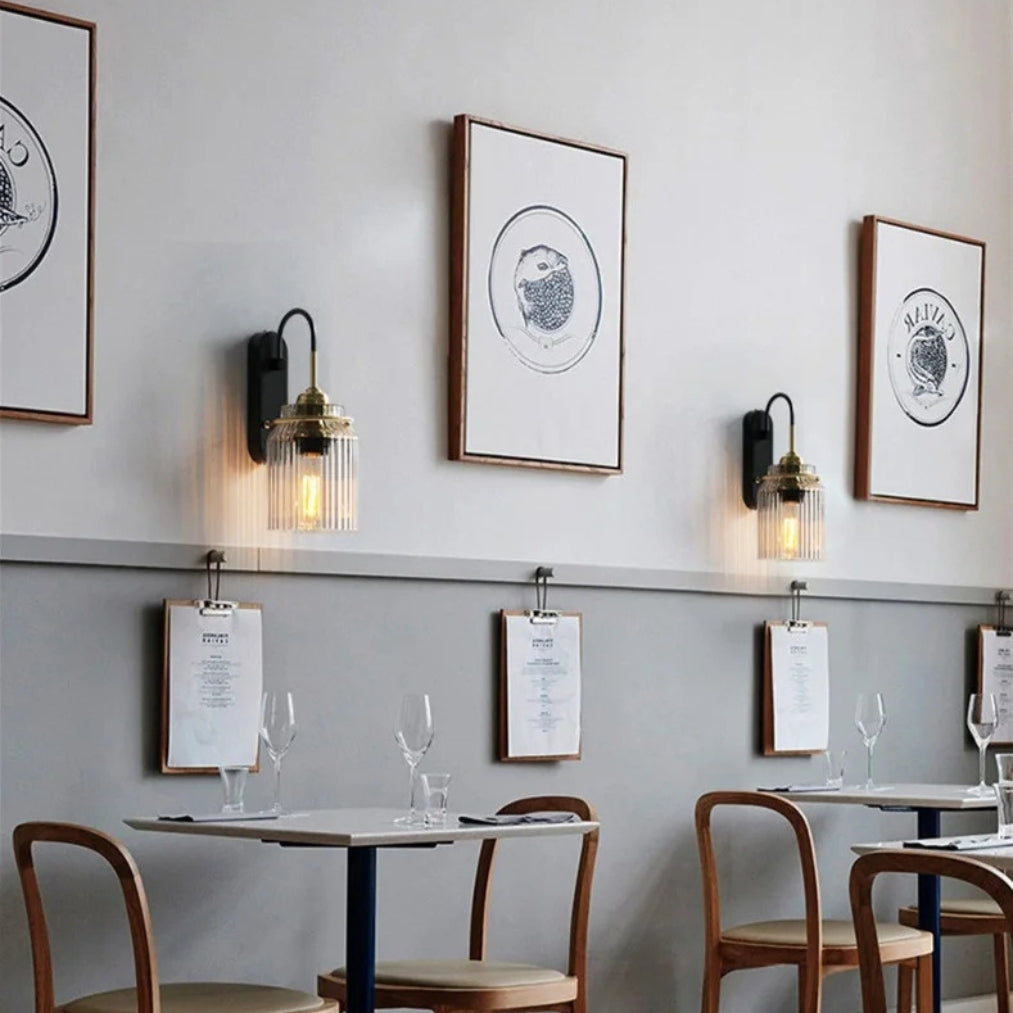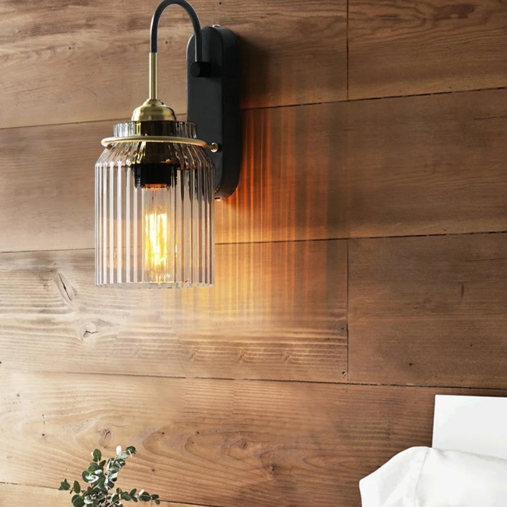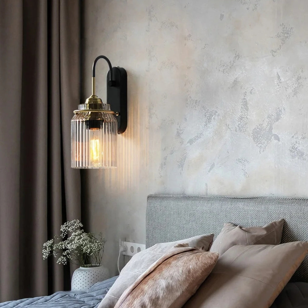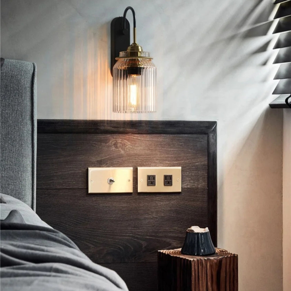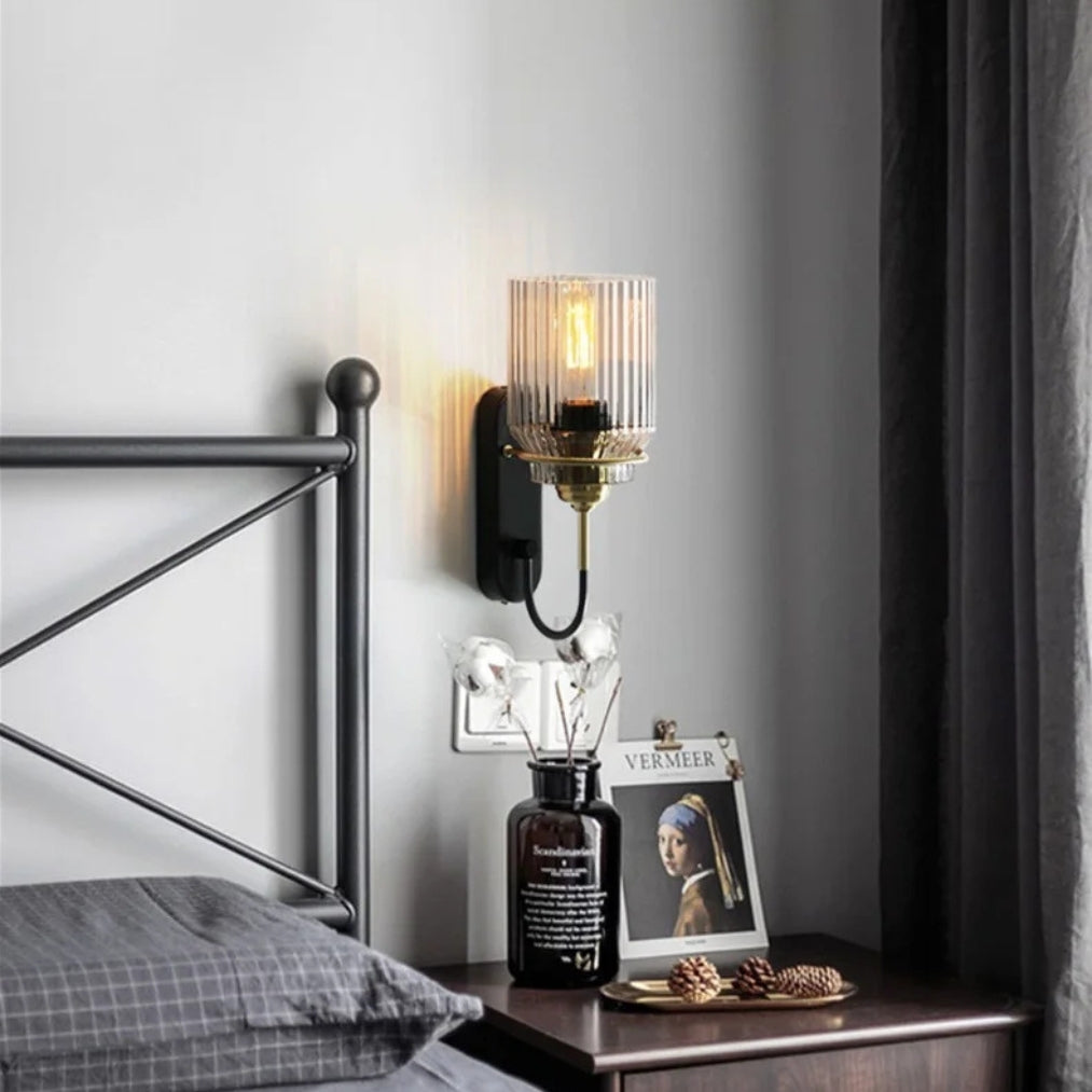 The LumaGlide Glass Sconce Wall Lights bring elegance and warmth into any living space with their ribbed glass shade and sophisticated brass-and-black finish. Perfect as bedside wall lamps, ambient wall light indoor, or stylish contemporary wall sconces.