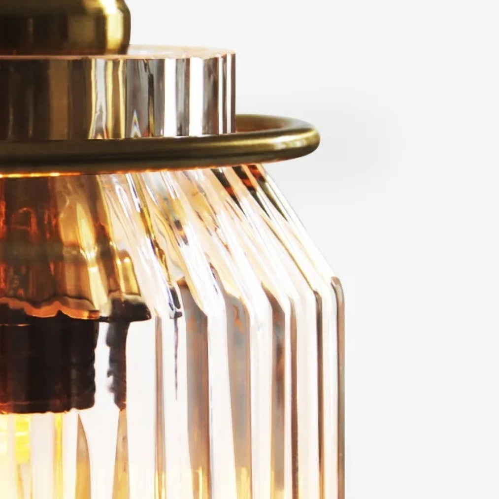 - Material: Ribbed glass shade + metal frame