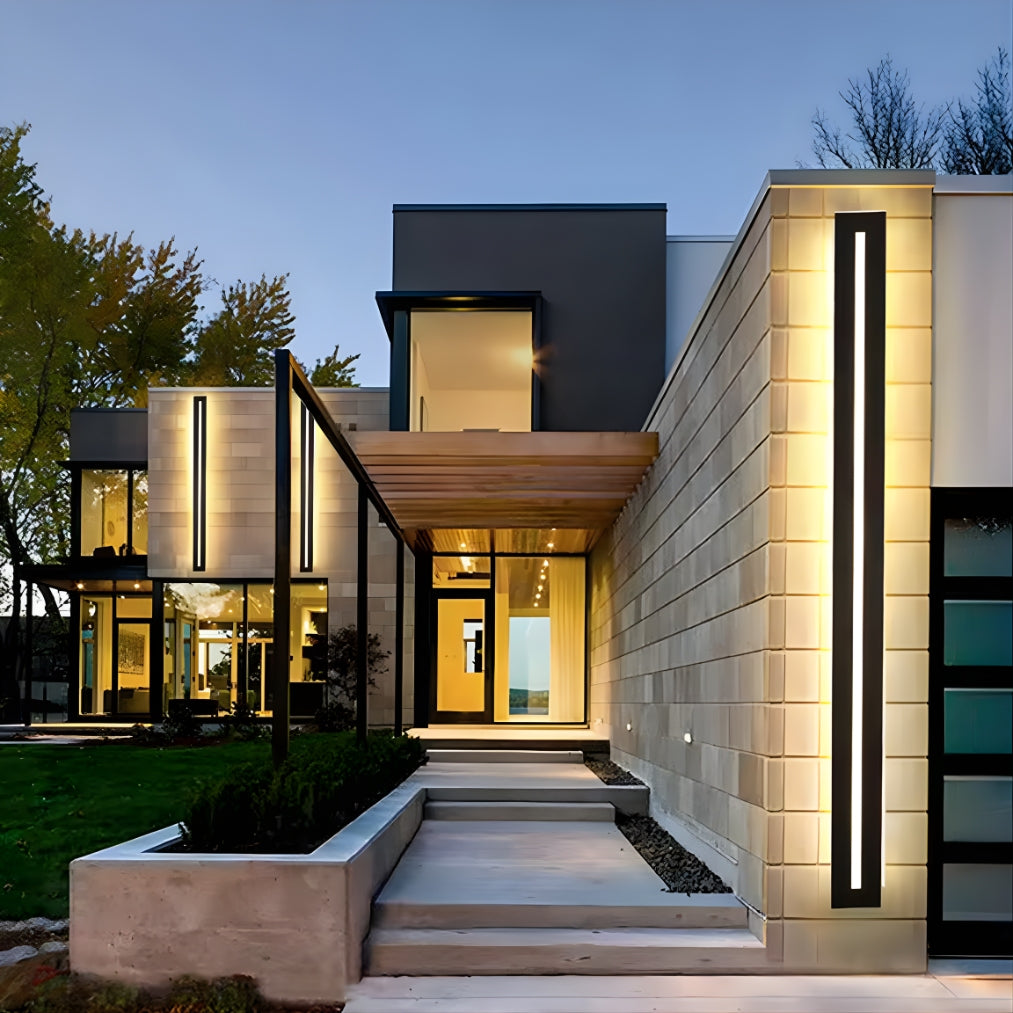 The LumeStria Long Contemporary Outdoor Wall Light brings a bold, architectural touch to your exterior spaces. Its sleek vertical silhouette and warm ambient glow enhance the elegance of any modern home.