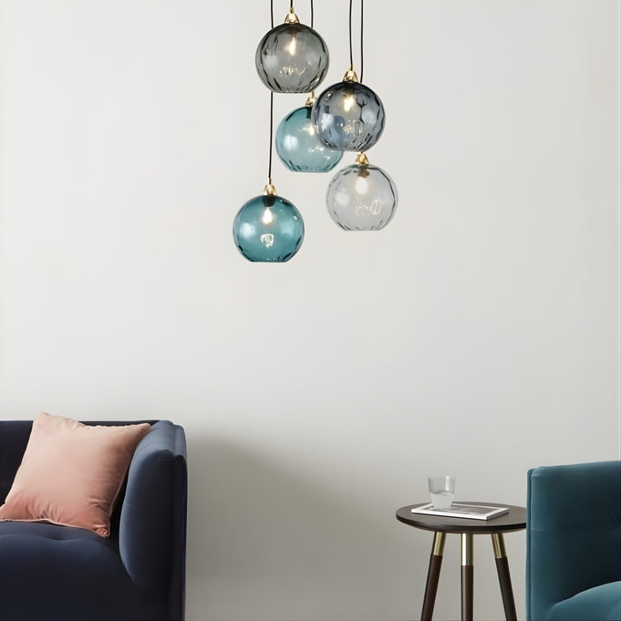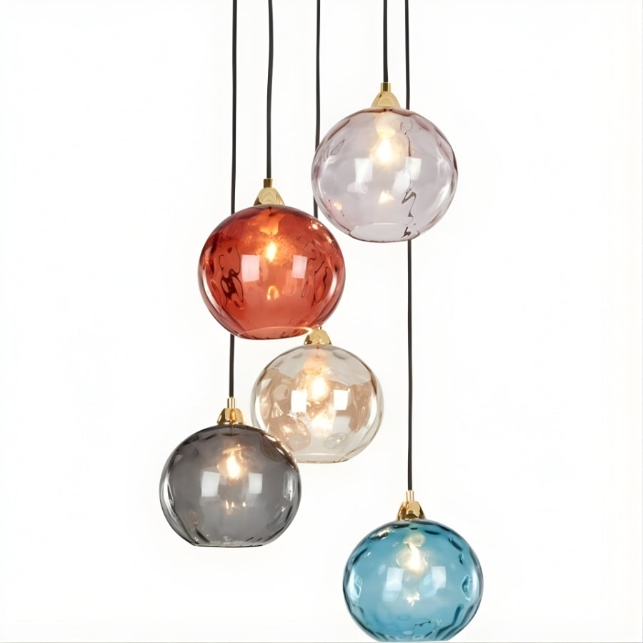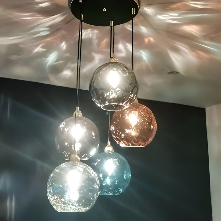 Transform your interior into a captivating visual experience with the LumiaDrop LED Colored Ball Glass Pendant Lights. Designed to merge art and illumination, this elegant cluster of five hand-blown glass spheres emits a warm, modern glow that enhances any living or dining space.