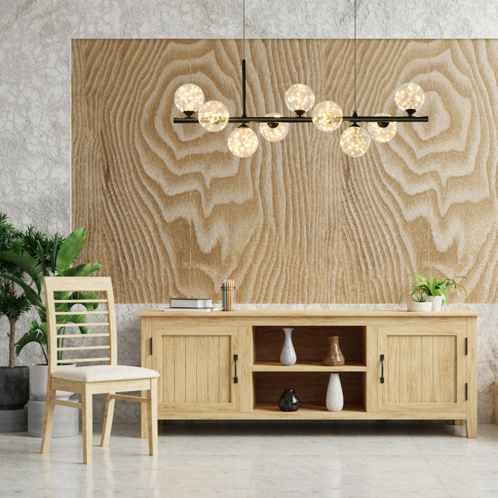 Perfectly suited for dining rooms, living areas, or open spaces, it creates a warm, inviting atmosphere while doubling as a striking piece of art for your ceiling.