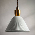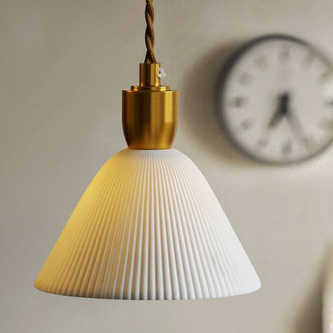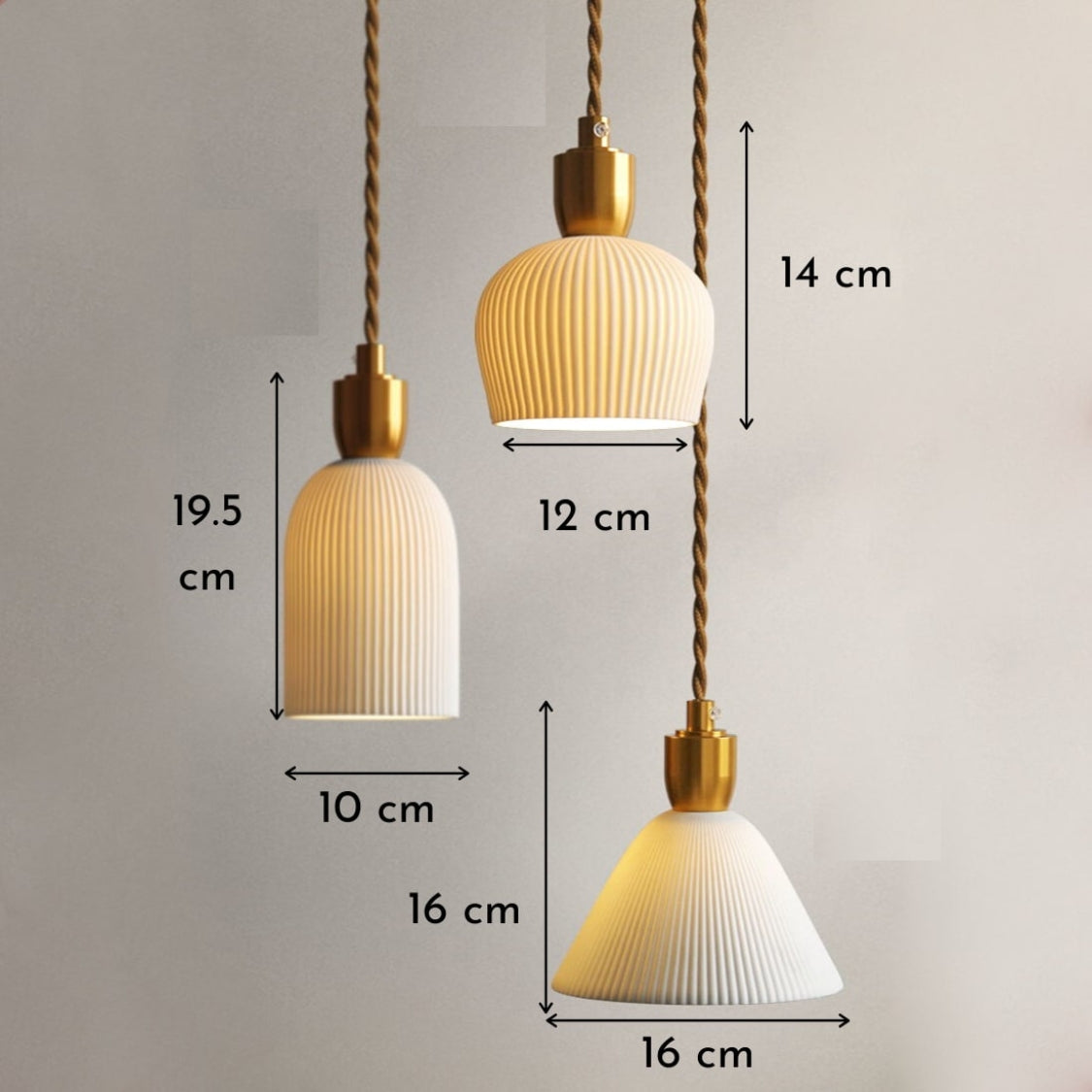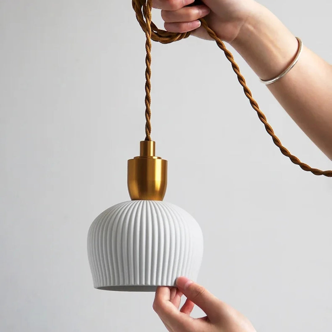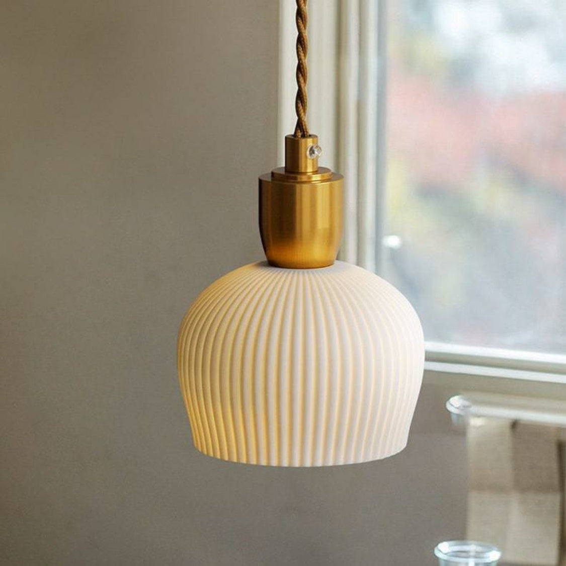 Bring refined elegance and soft illumination into your home with the LumiVase Japanese ceramic pendant light. Inspired by minimalist Japanese design, this pendant combines a finely ribbed ceramic shade with a warm brass holder and twisted fabric cord.