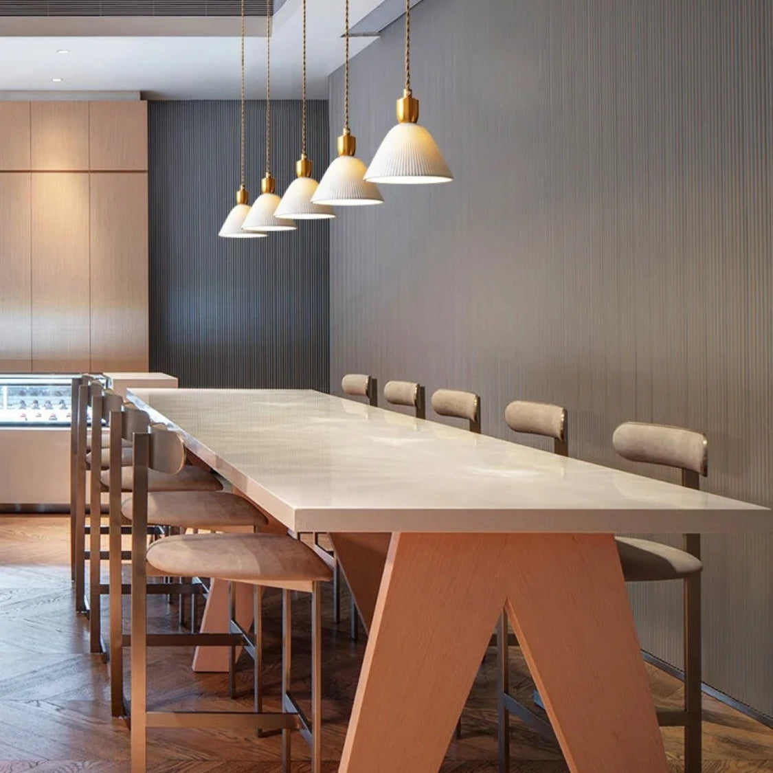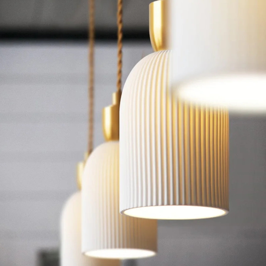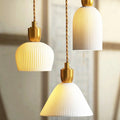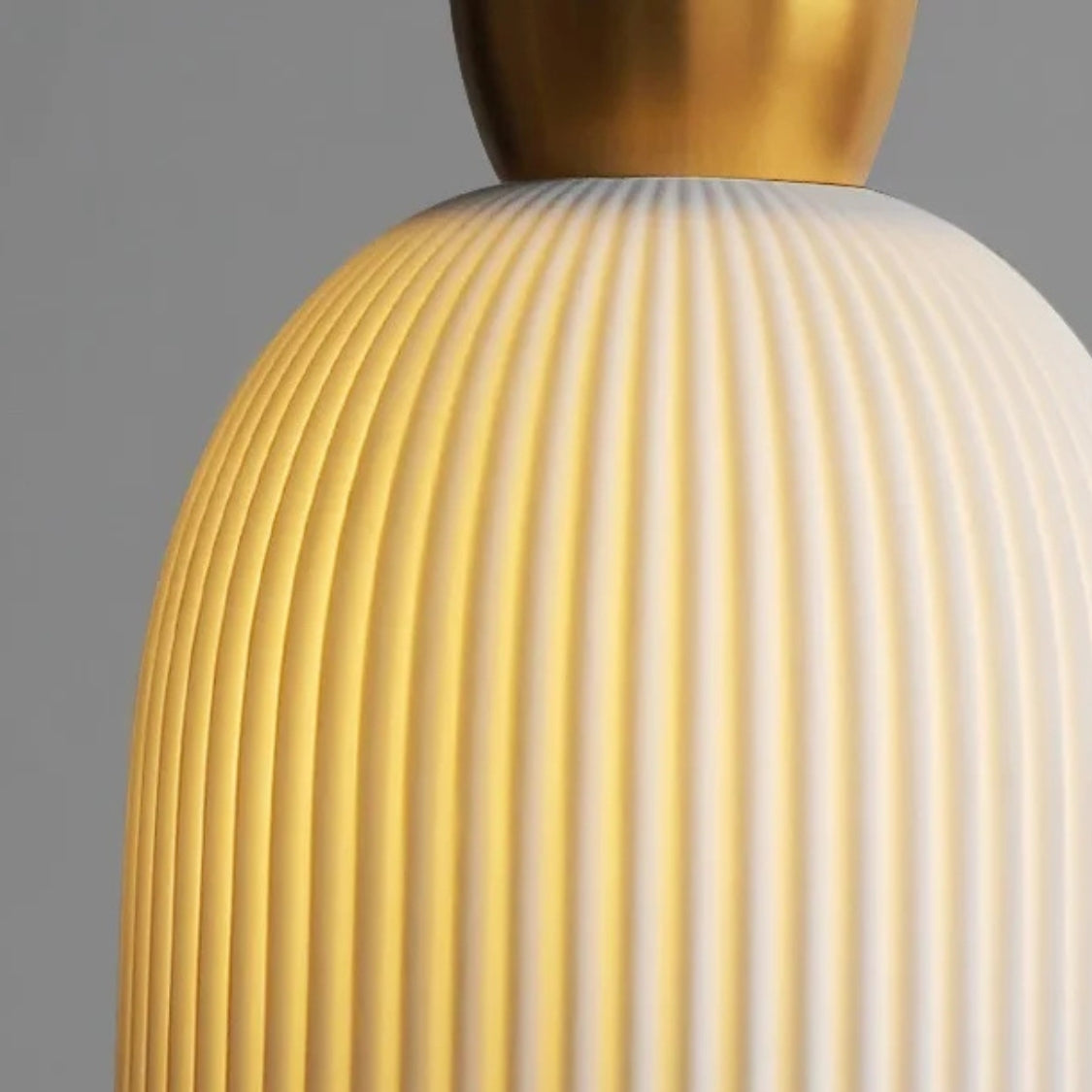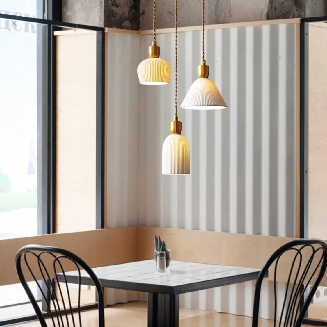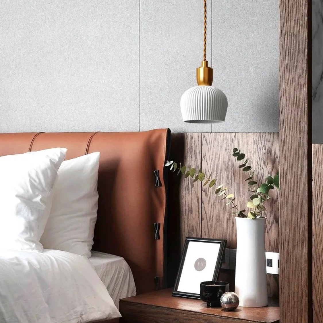 Bring refined elegance and soft illumination into your home with the LumiVase Japanese ceramic pendant light. Inspired by minimalist Japanese design, this pendant combines a finely ribbed ceramic shade with a warm brass holder and twisted fabric cord.
