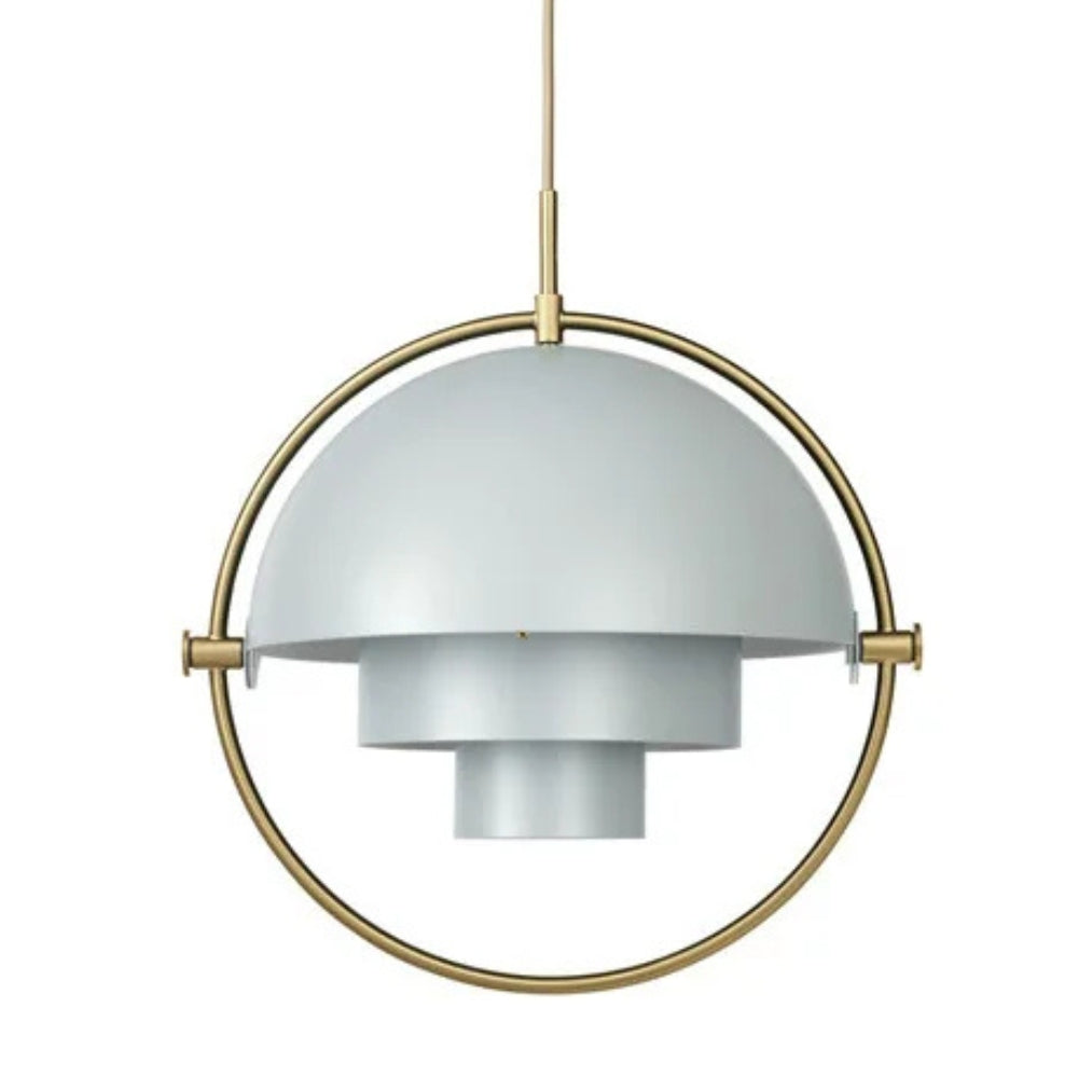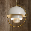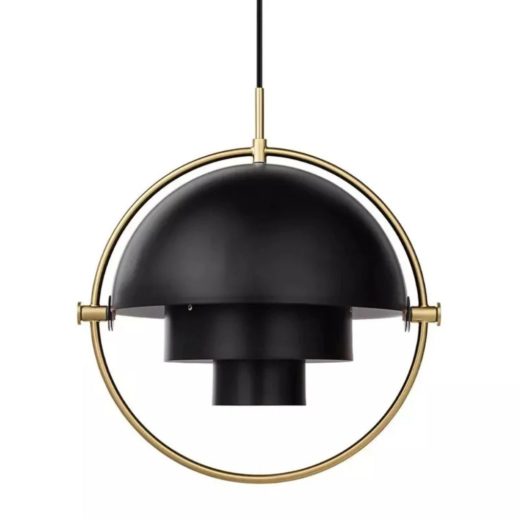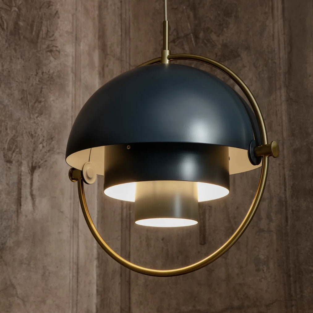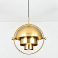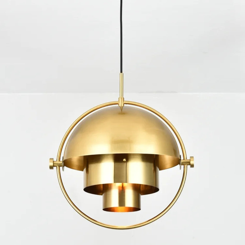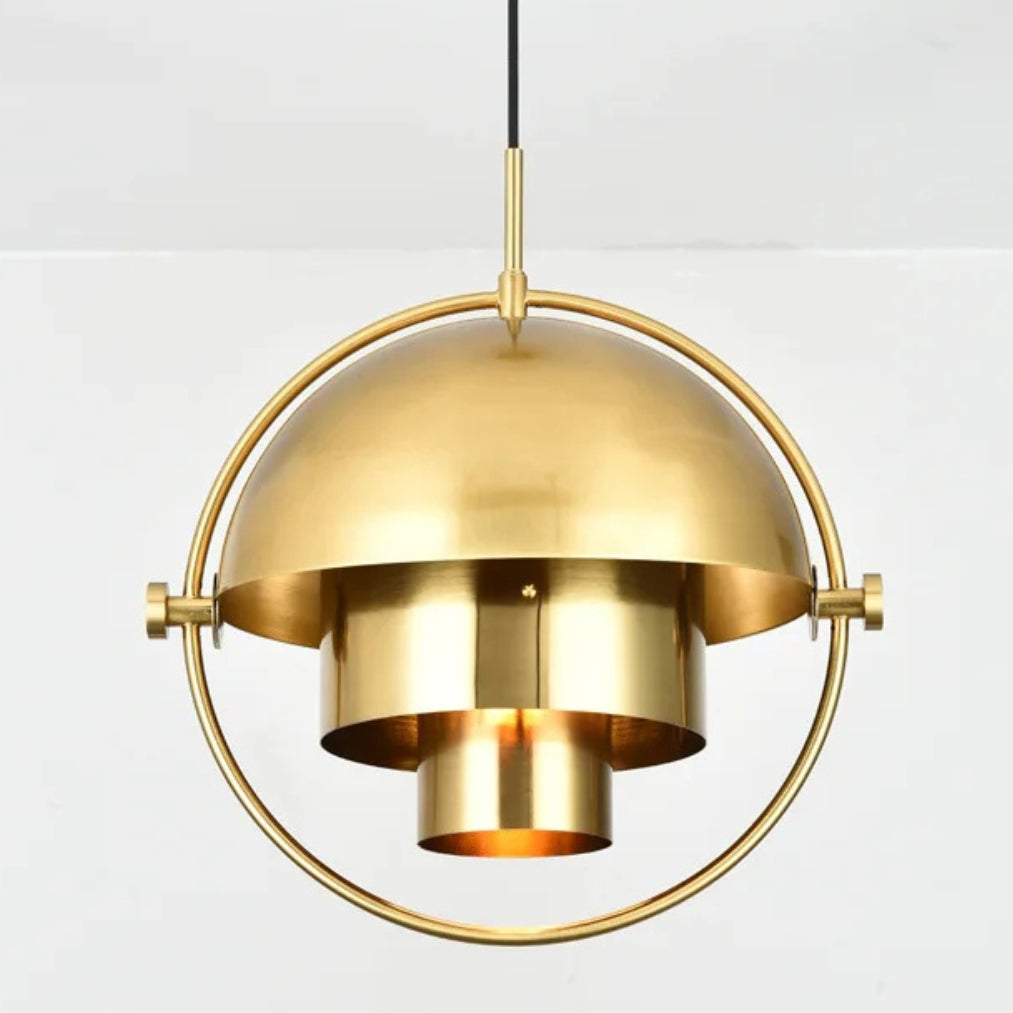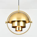 Illuminate your home with the LumoGlide Adjustable Multilayer Dome Pendant Light, where artful design meets refined function. This elegant lighting fixture showcases a distinctive multilayer dome encased within a golden circular frame, blending industrial edge with modern sophistication.