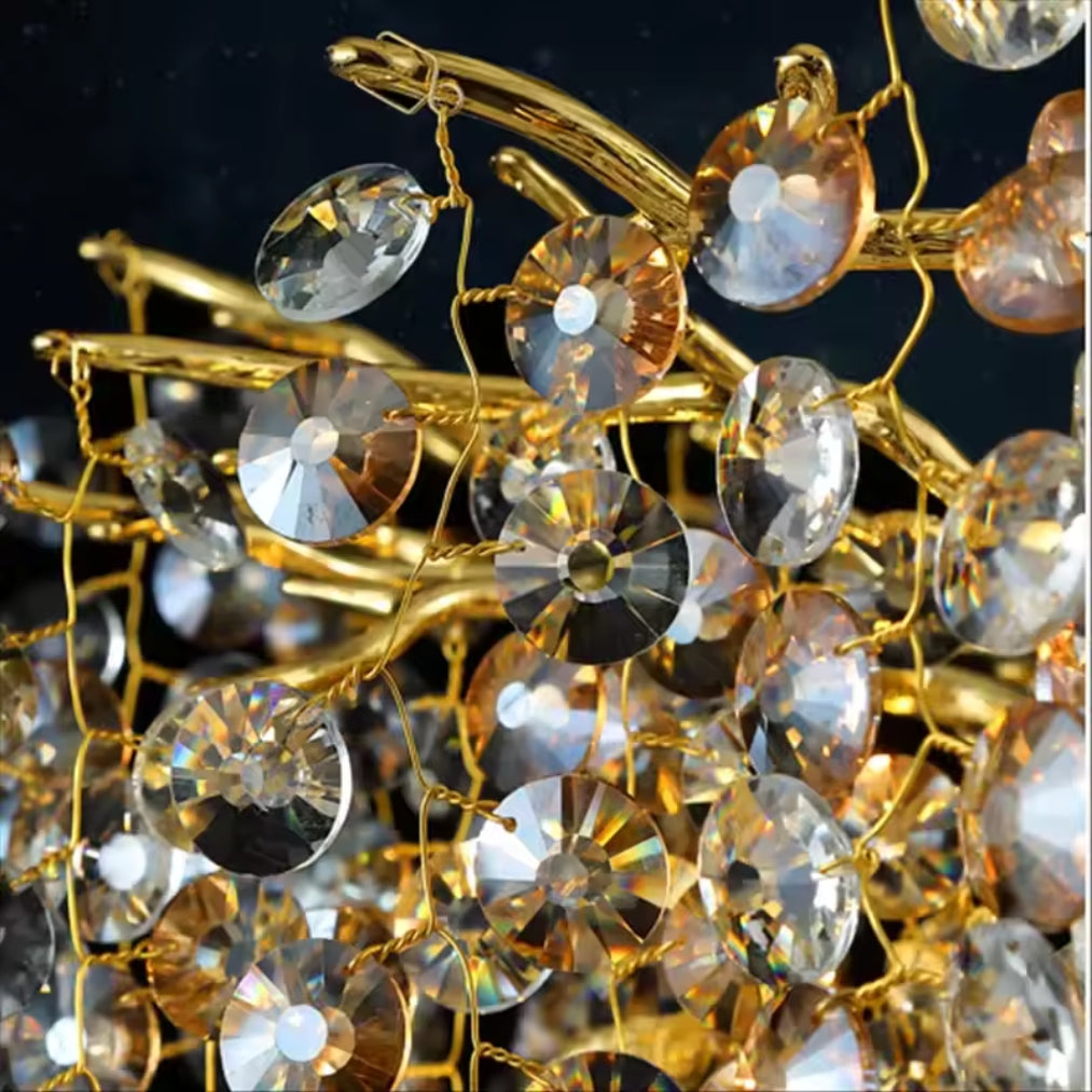 ✔️ Crystal Leaf Cascade – Intricately arranged crystal discs reflect light beautifully, creating a dazzling, nature-inspired design.