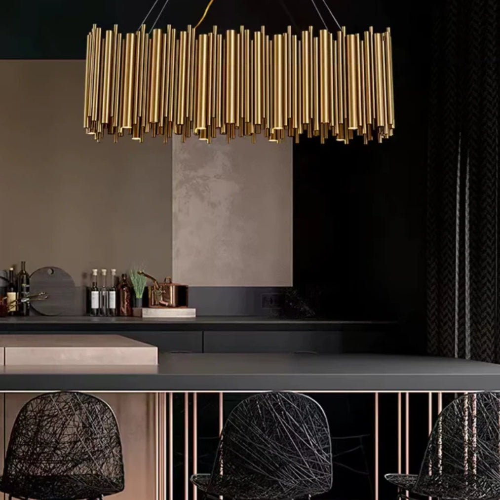 PipeNest - Modern Gold Round Tube Chandelier Light