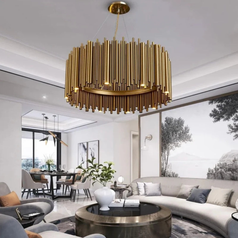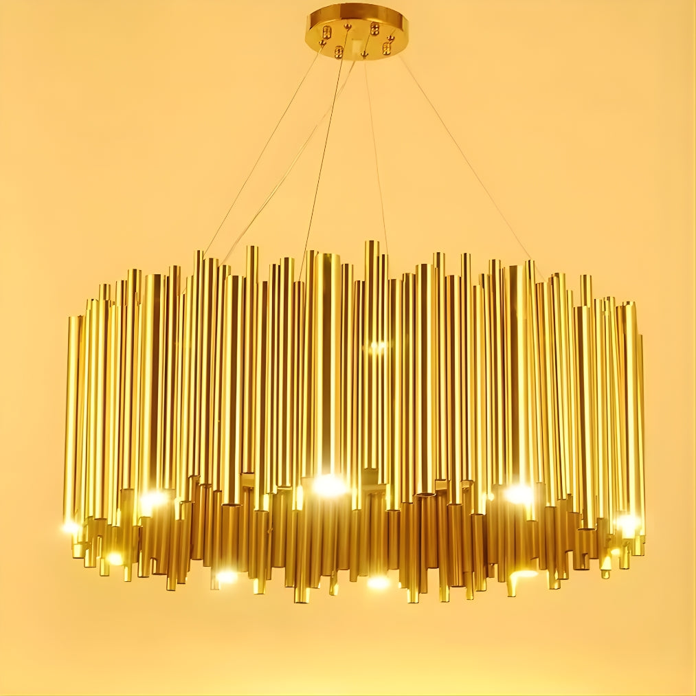 - 1x PipeNest - Modern Gold Round Tube Chandelier Light