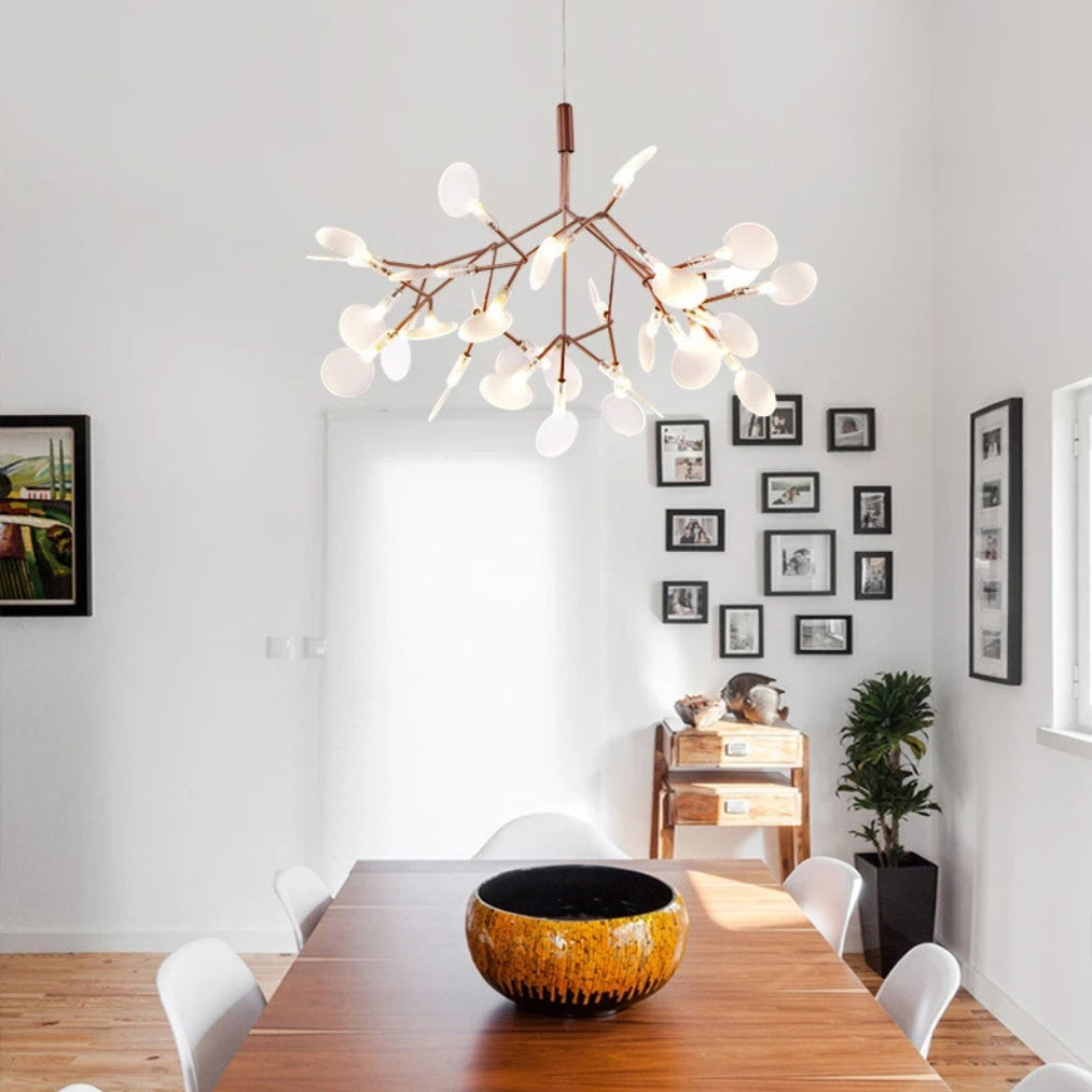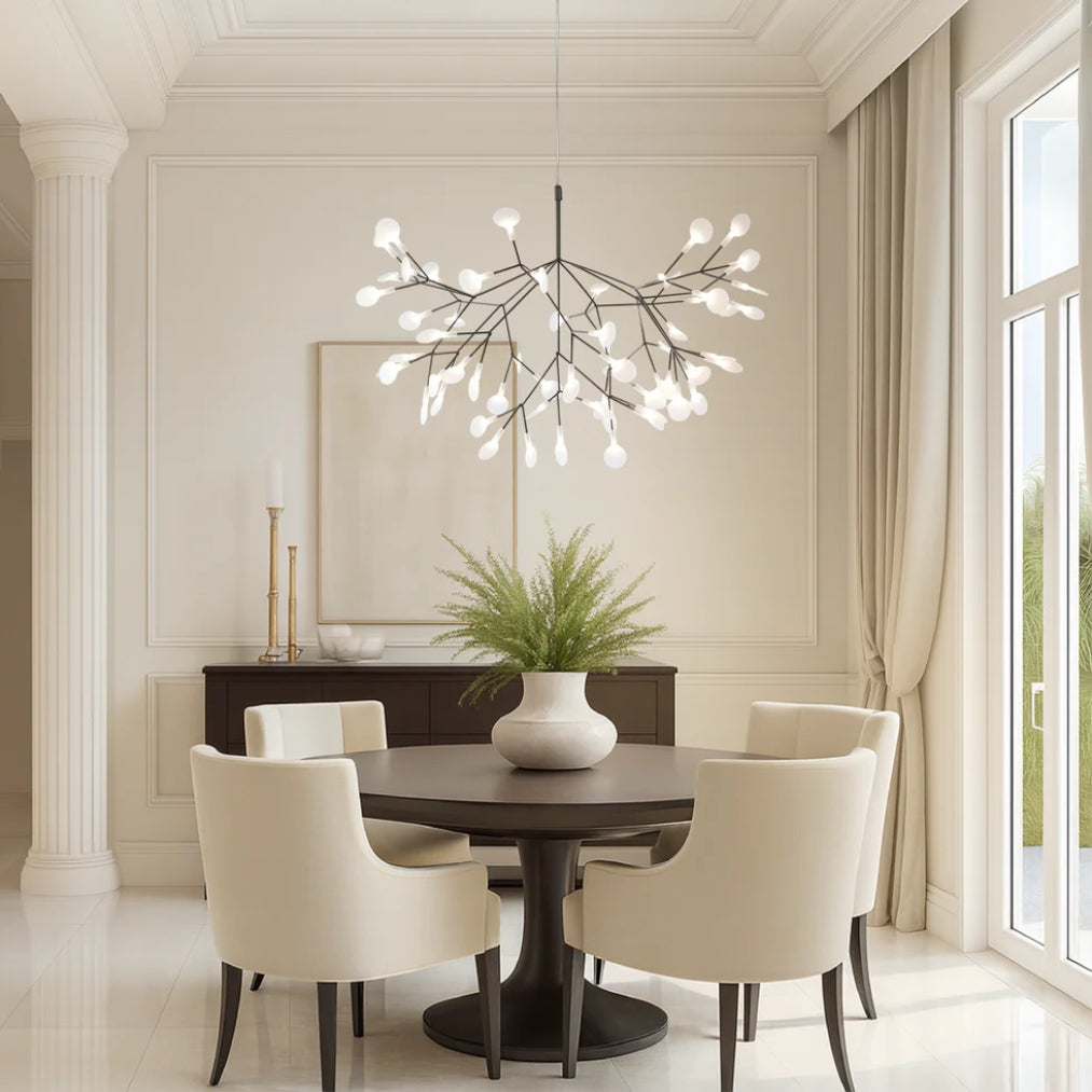 ✔️ Branch-inspired elegance: A sculptural structure with glowing light tips that resemble sparkling leaves or blossoms.