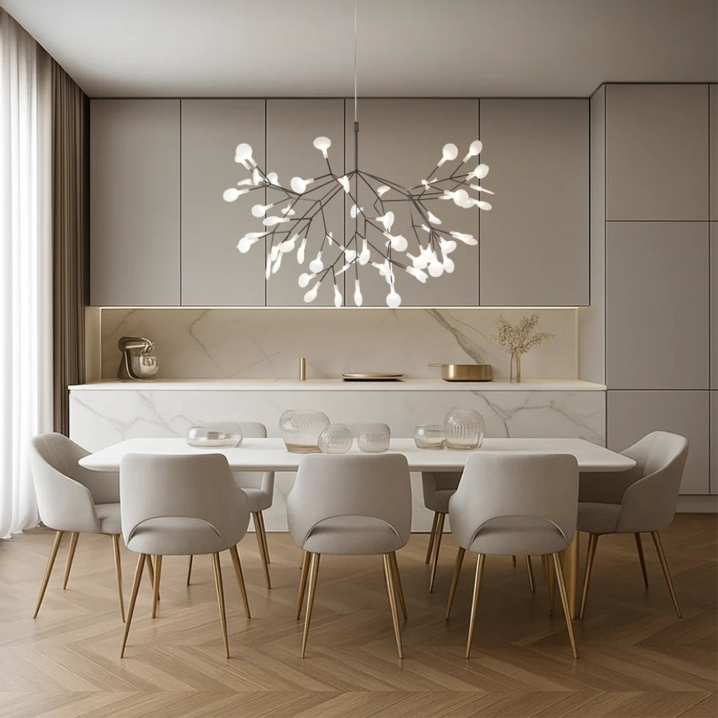 The SparkleBranch Chandelier is a stunning fusion of modern Nordic style and natural elegance. Its branch-inspired design, illuminated with glowing tips, transforms any room into a warm, inviting space.