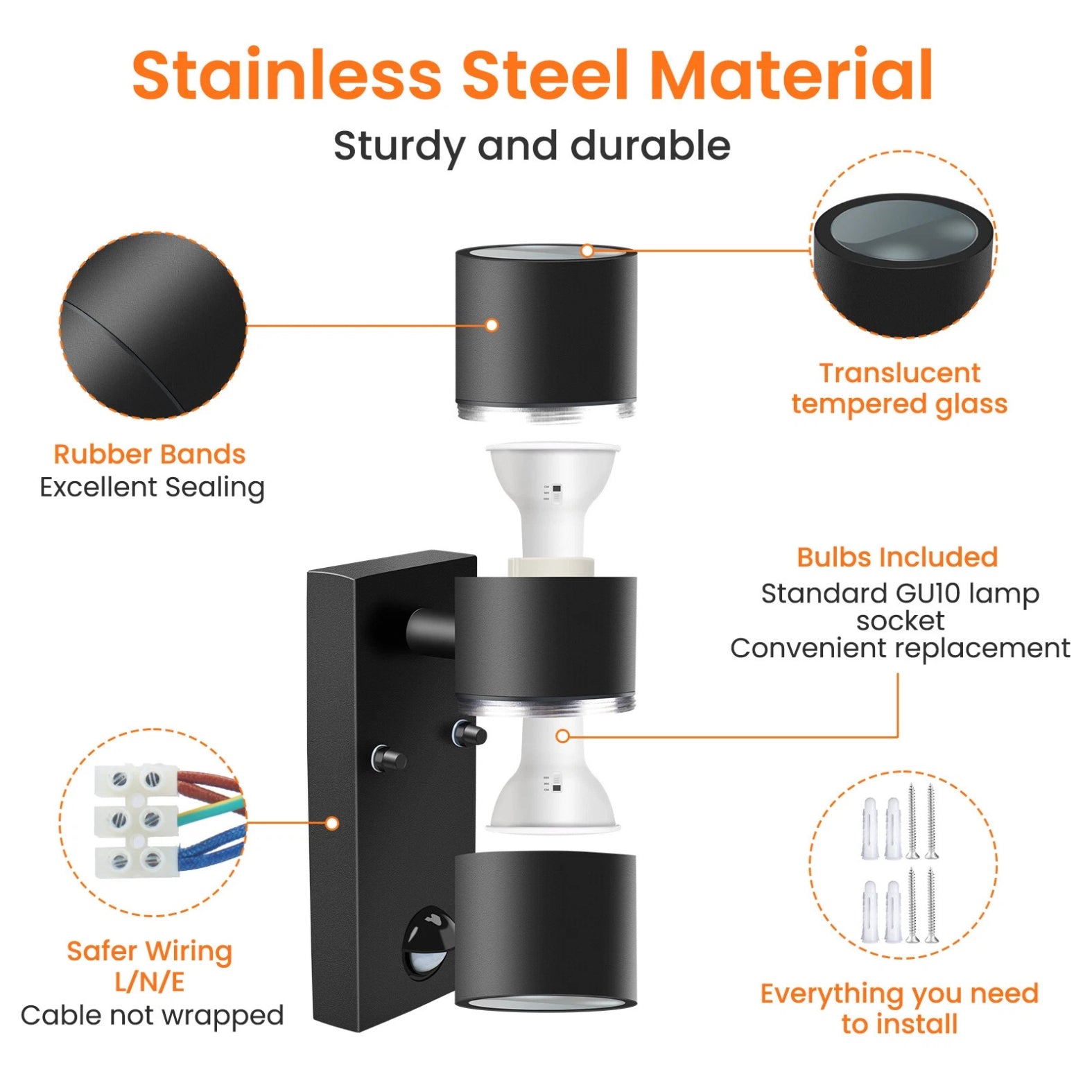 - 1 x SpotGuard – Up and Down Outdoor Wall Lights with Sensor